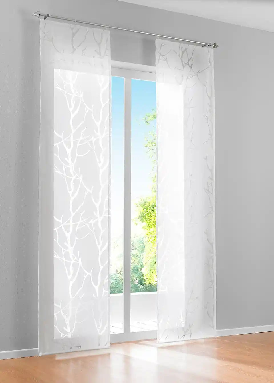 Ta polprosojna drsna zavesa v visokokakovostni tehniki izžiganja spretno in elegantno polepša tvojo okensko površino.