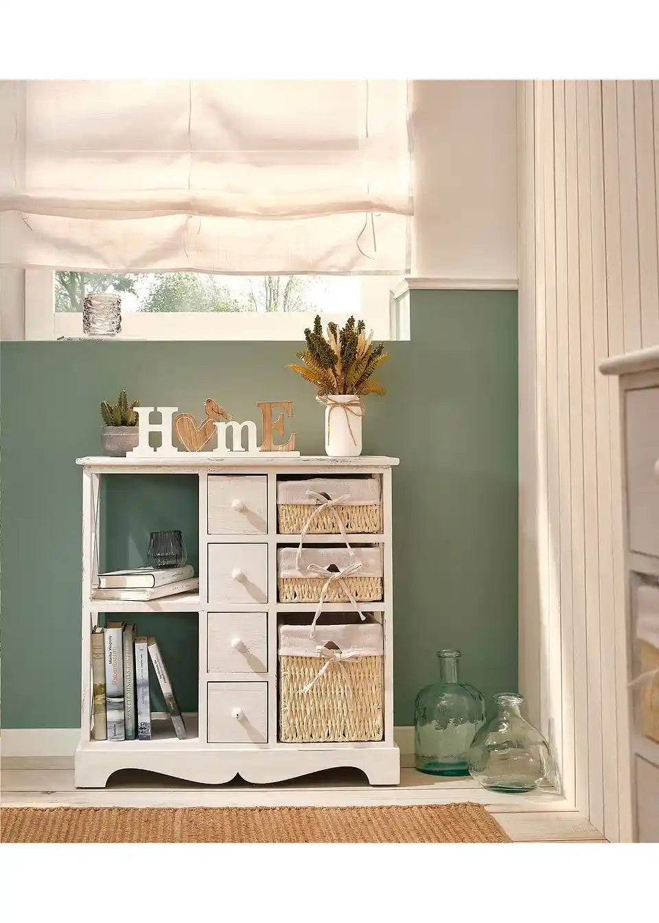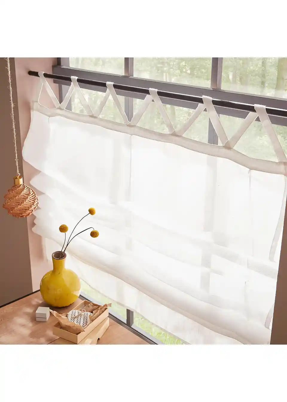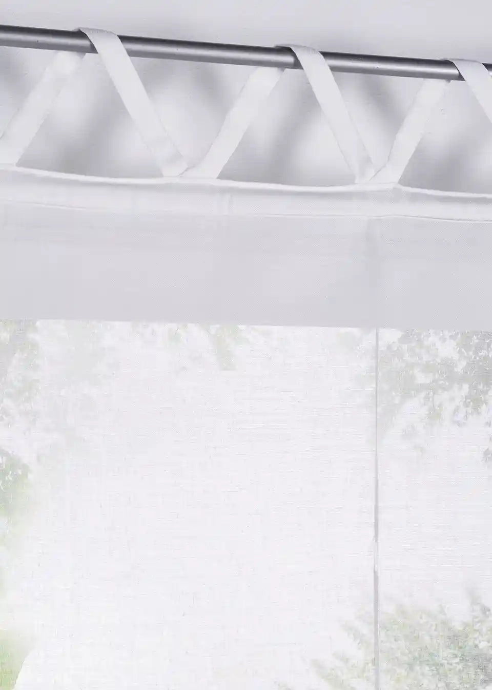 Bändchenrollo je okras za okna v preprostem lanenem videzu, vendar z igrivimi podrobnostmi, kot so križno zankasto obešanje ali prosto viseči spodnji rob. V nevtralnem krem tonu je združljiv in se odlično poda k številnim obstoječim dekoracijam. Z všitimi trakovi ga je mogoče enostavno pritrditi na željeno višino.