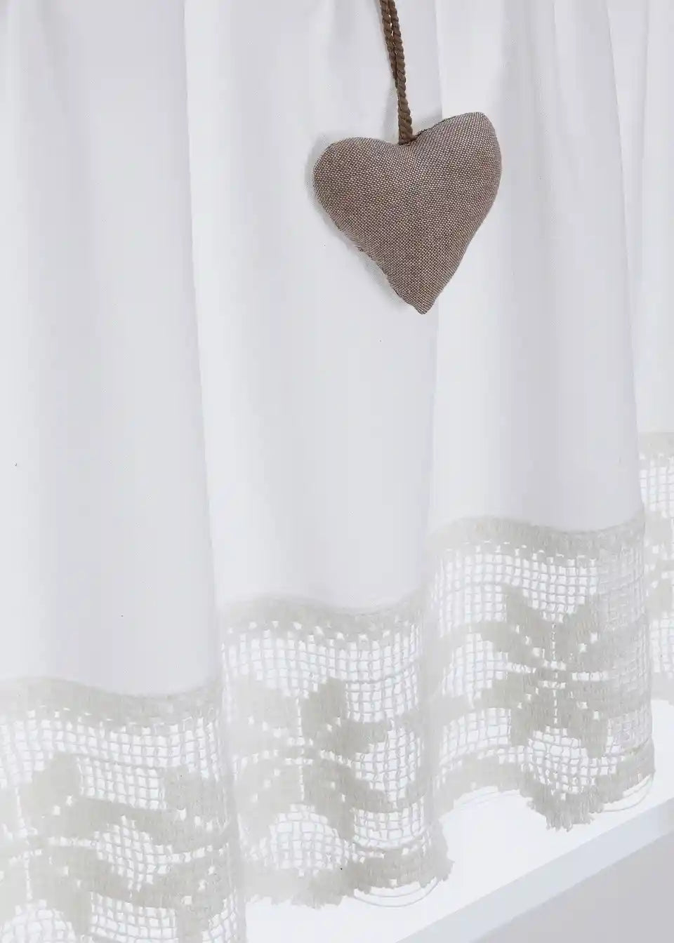 Romantična kuhinjska zavesa z visokokakovostnim kvačkanim robom in aplikacijami v obliki src