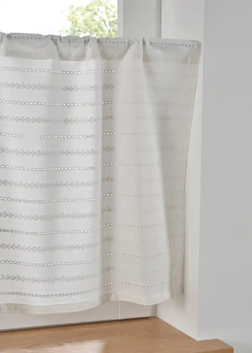 Polovična zavesa iz ekološkega bombaža z luknjičasto vezenino