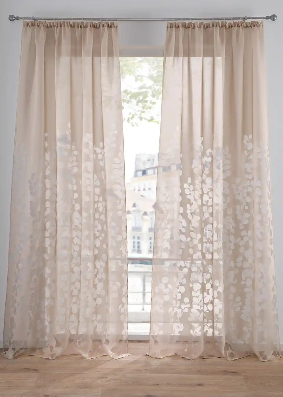 Izjemno visokokakovostna izžgana tkanina v cvetličnem izgledu na tej zavesi v šali