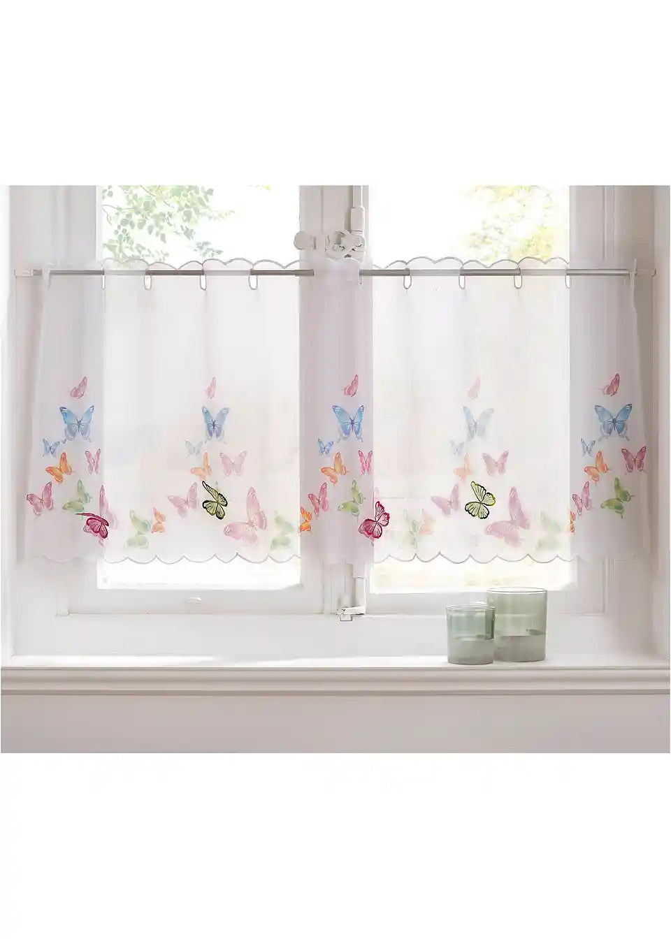 Čudovita kuhinjska zavesa s pisanimi metulji
