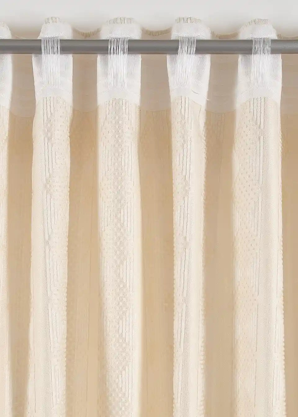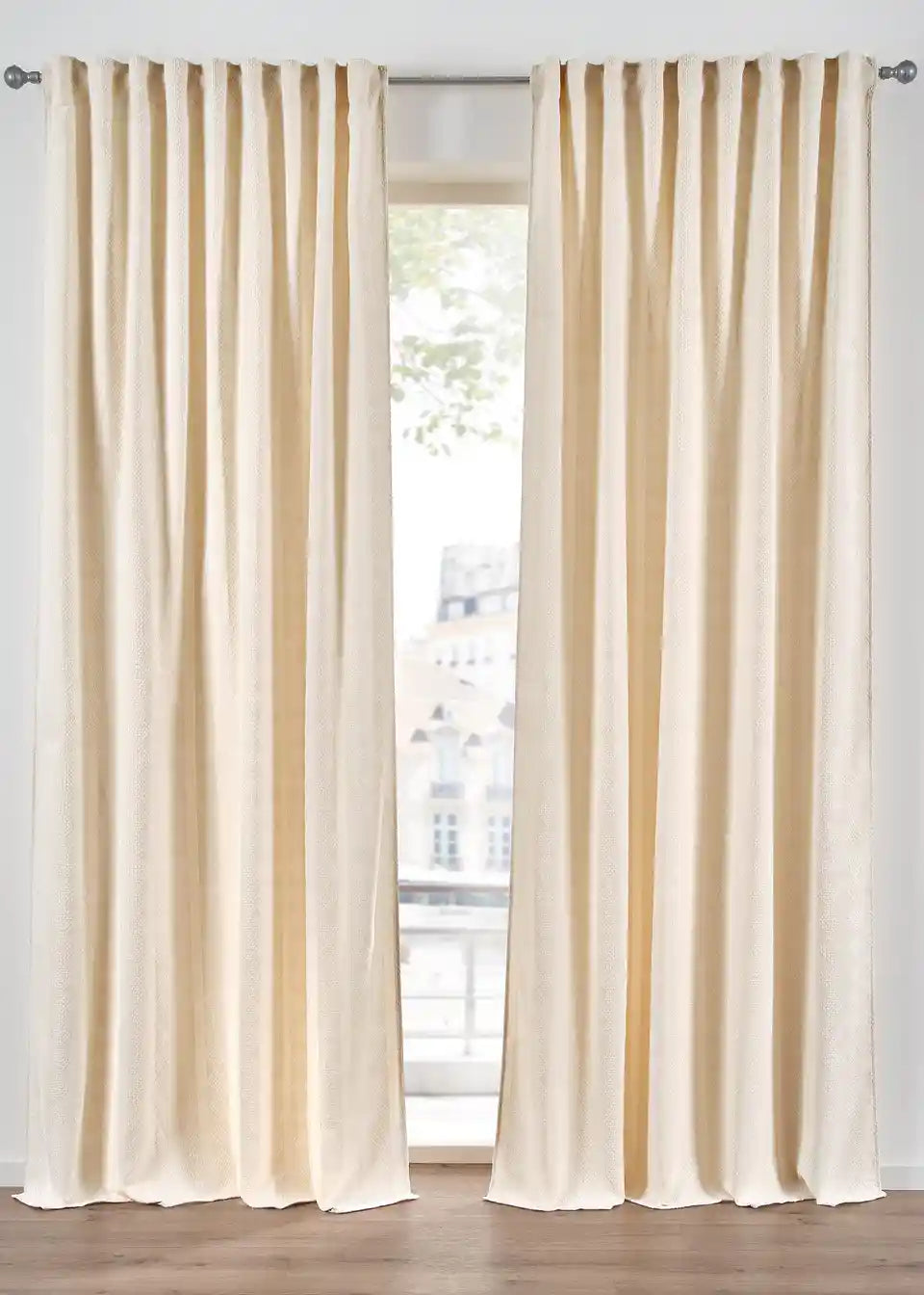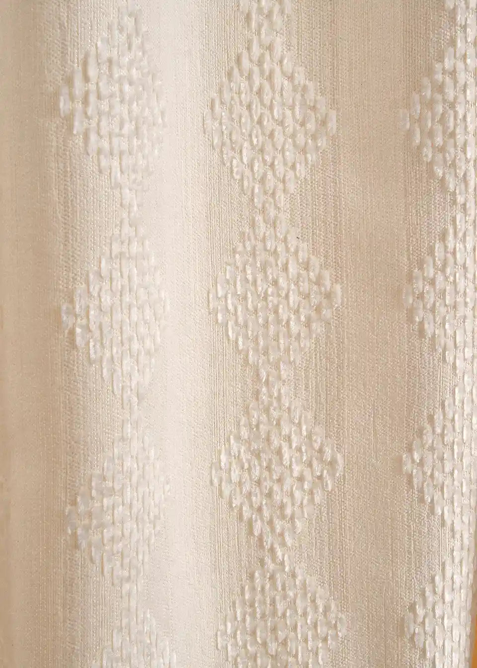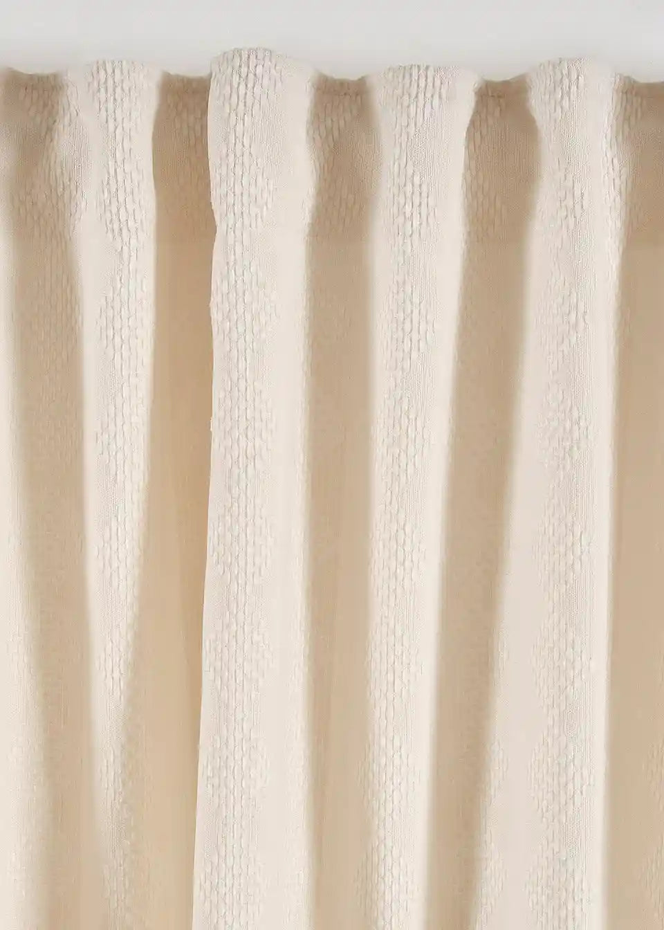 Zavesa je v toplem naravnem tonu in ustvarja prijetno vzdušje v tvojih prostorih. Rombasti vzorec zavese je moderen in diskreten. Tkanina chenille je prepoznavna po svoji žametni površini.