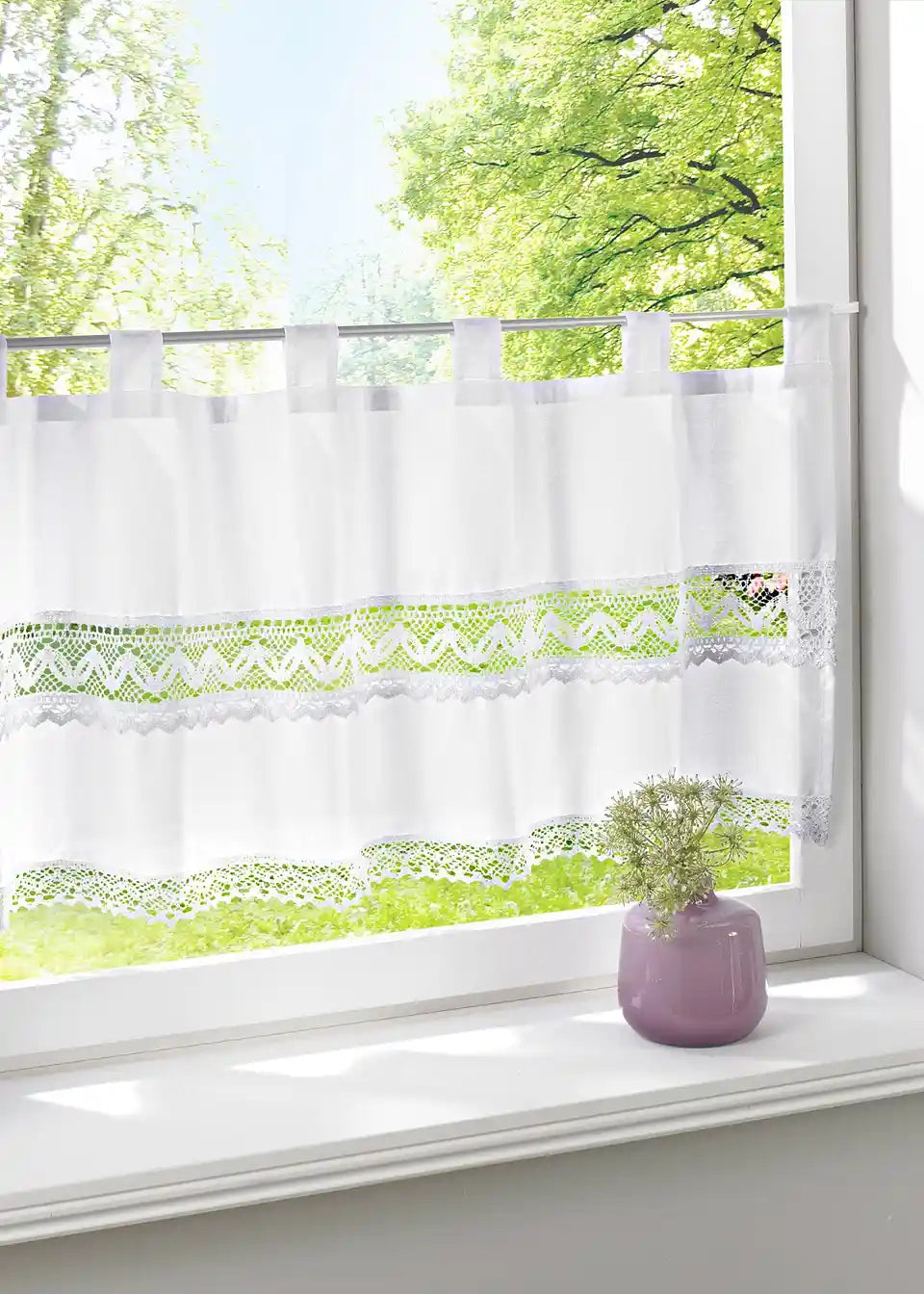 Kuhinjska zavesa z lepimi čipkastimi detajli