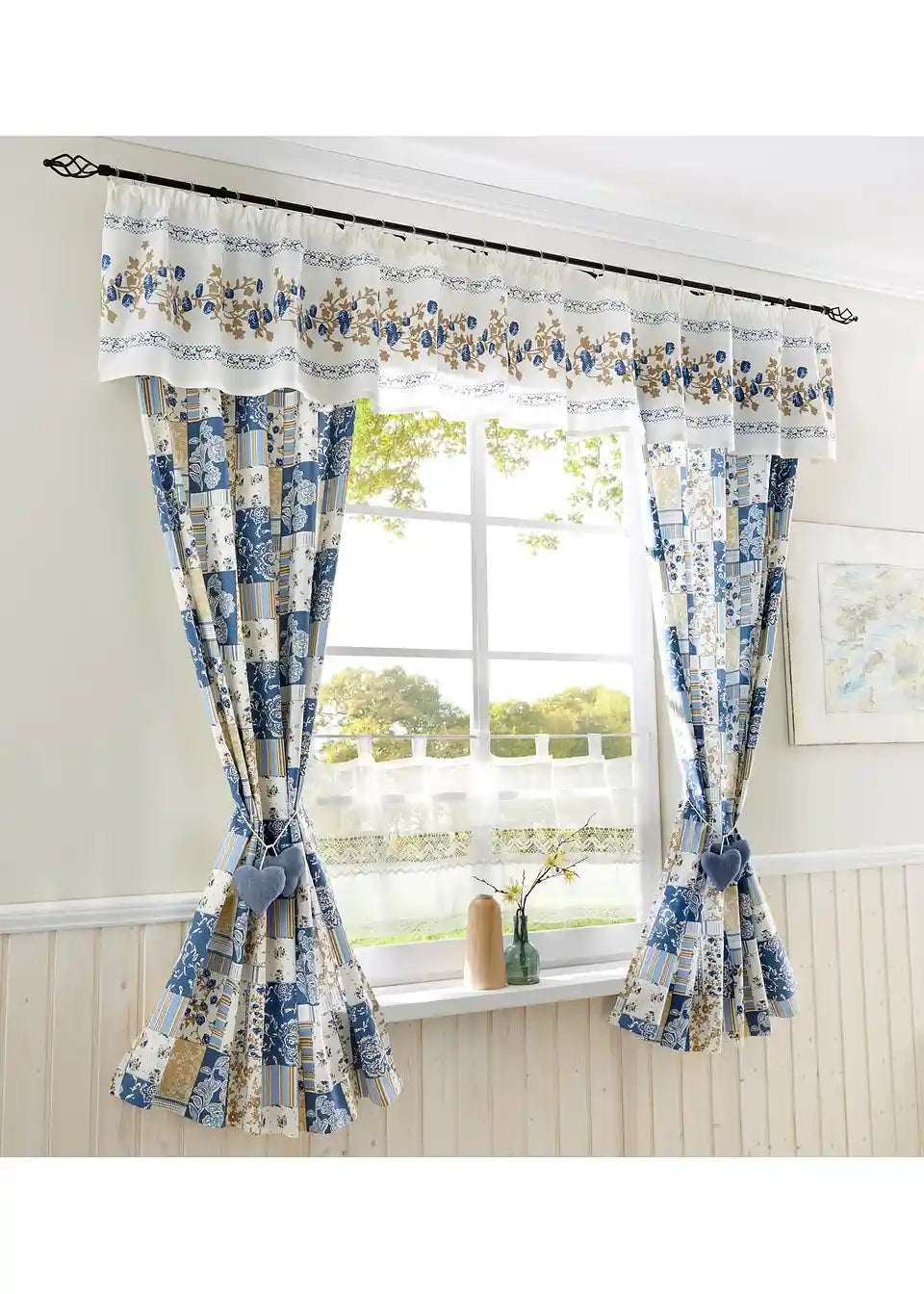 Panelna zavesa iz polprosojnega materiala se pokaže v prekrasnem podeželskem slogu. Čipkasti vložek in čipkast rob na zaključku naredita to kuhinjsko zaveso tako posebno. Pritrjevanje je izredno enostavno s pomočjo zank.