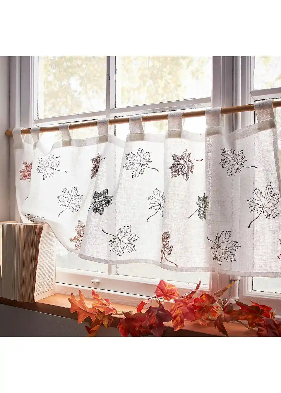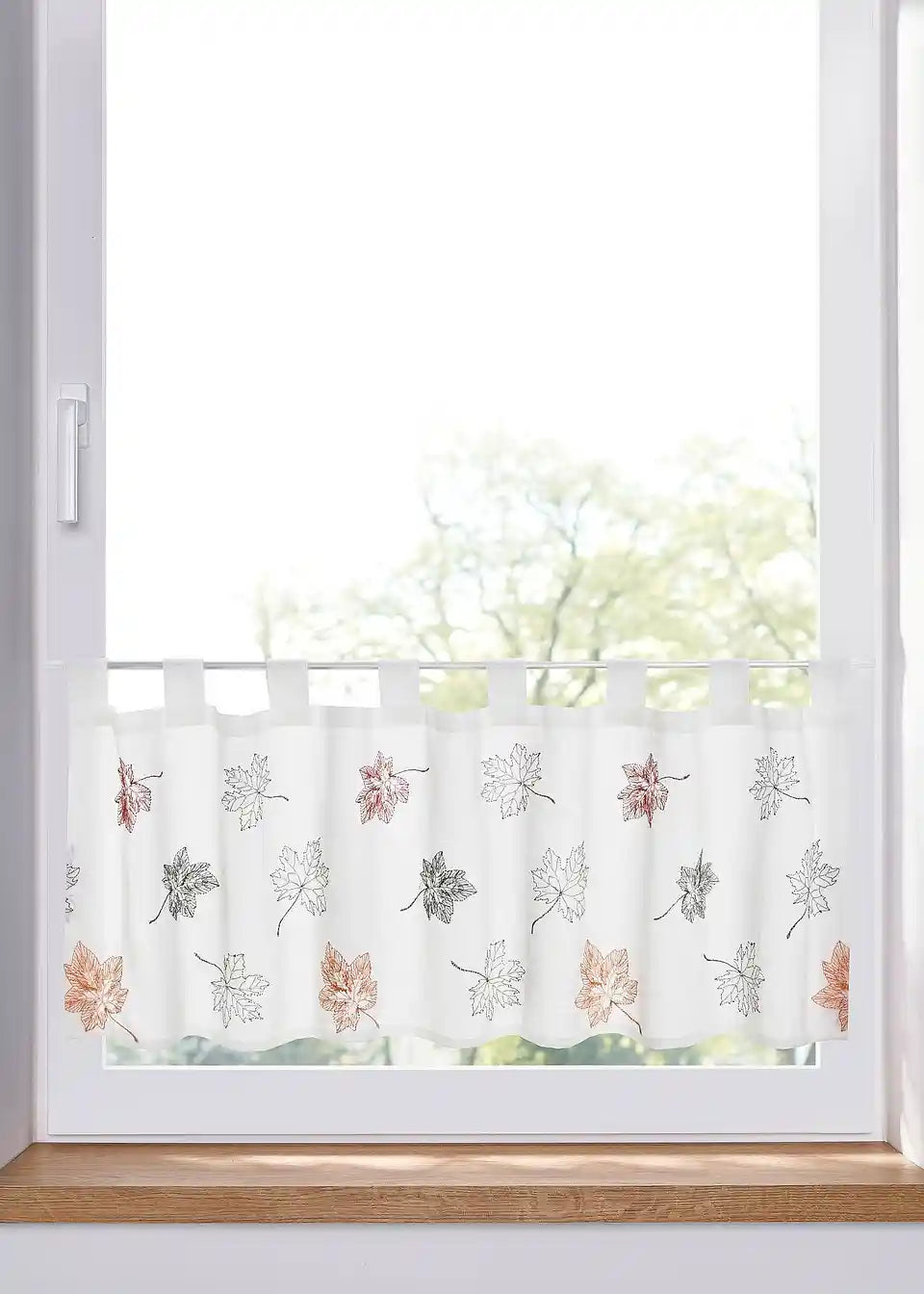 Panelna zavesa ima čudovito vezenino v jesenskih barvah. Material je iz polprosojne tkanine v videzu lanu. To poudari naravni videz te panelne zavese.