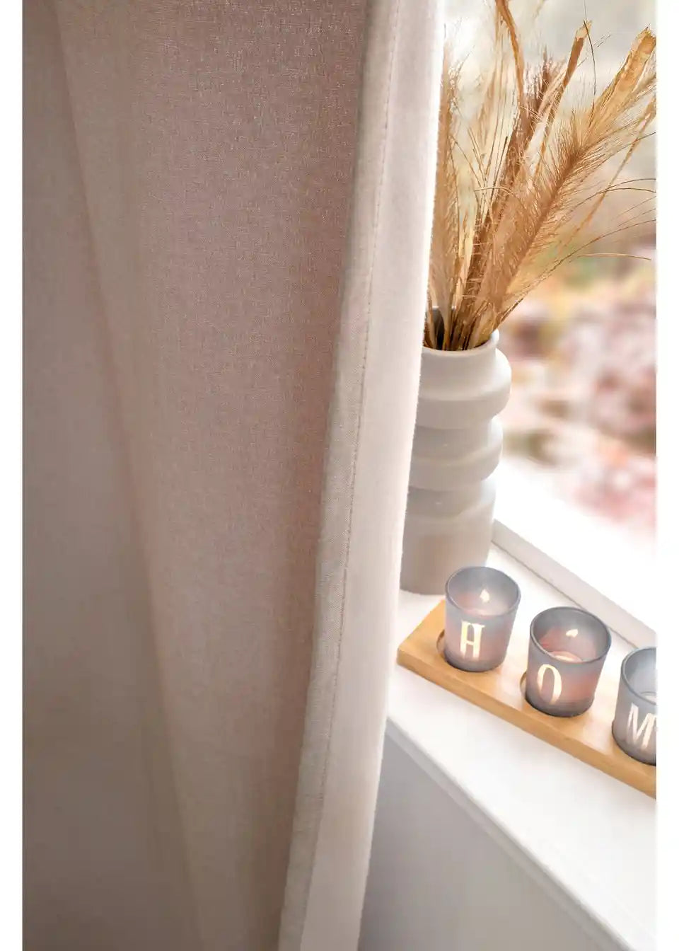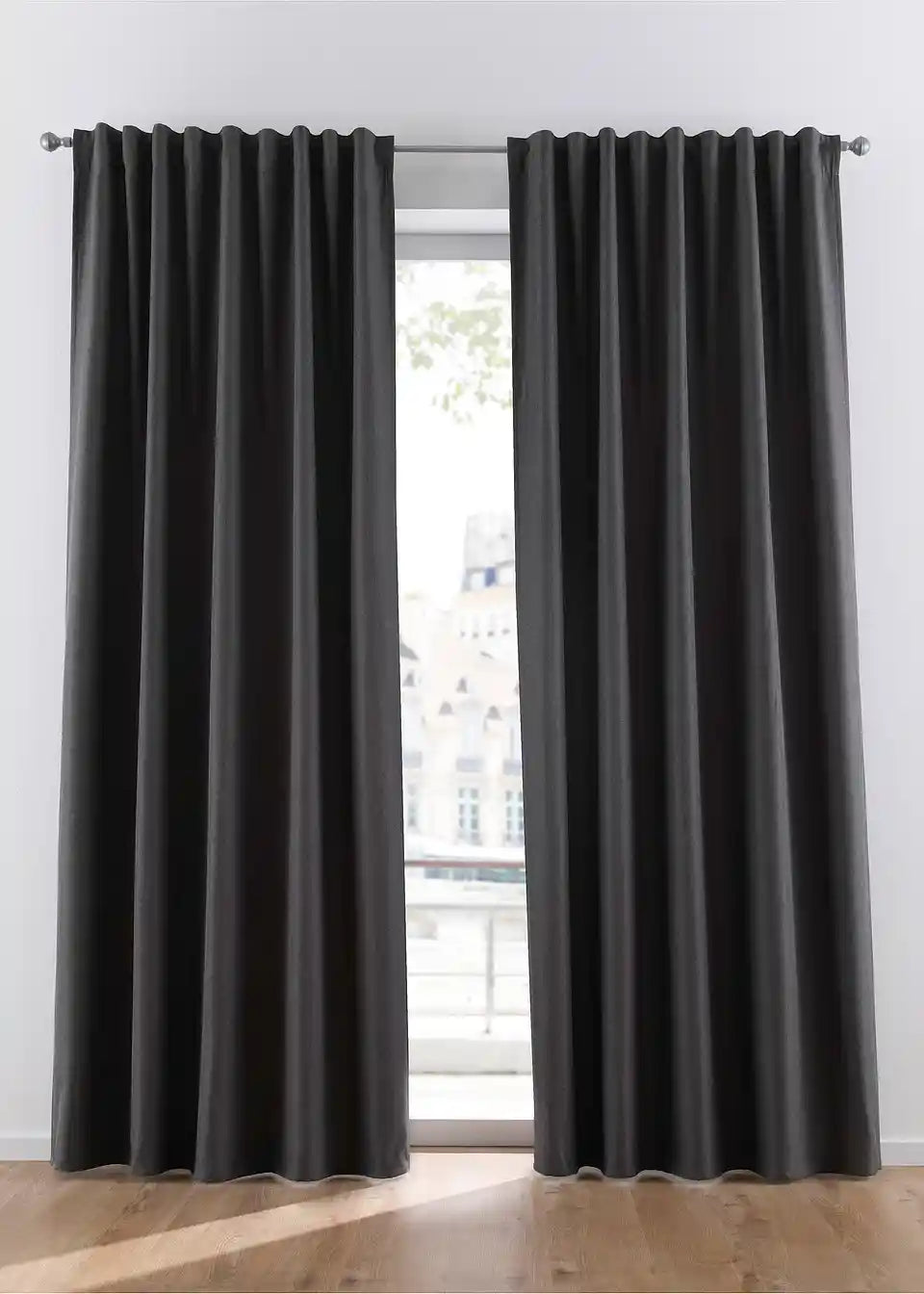 Ta brezčasna in preprosta toplotno-izolacijska zavesa lahko s svojo težko tkanino odbija hladen prepih in toploto. Tako lahko pripomore k varčevanju z energijo. Ne glede na to, ali je v spalnici, dnevni sobi ali na hodniku kot nadomestek za vrata - ta zavesa je vsestransko uporabna. Zadnja stran je nekoliko svetlejša od sprednje strani in rahlo kosmata.