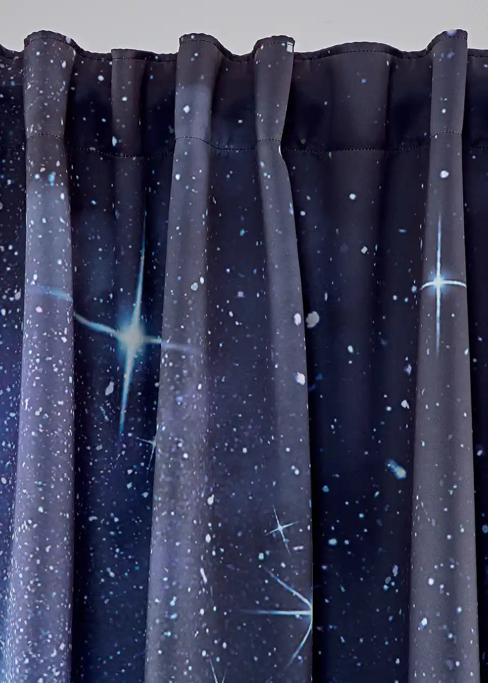 Ta čudovita zavesa z motivom nočnega neba očara vaš prostor in vam pomaga zatemniti prostor za prijeten spanec.