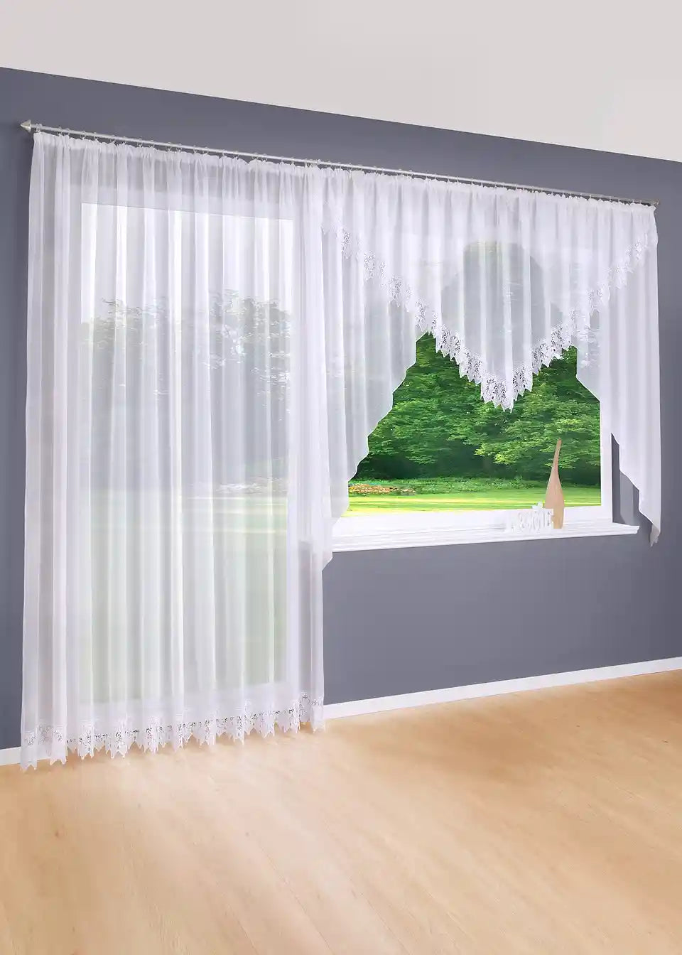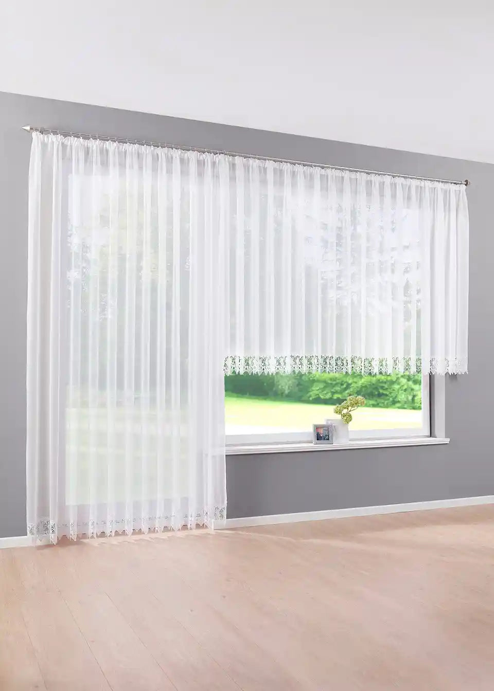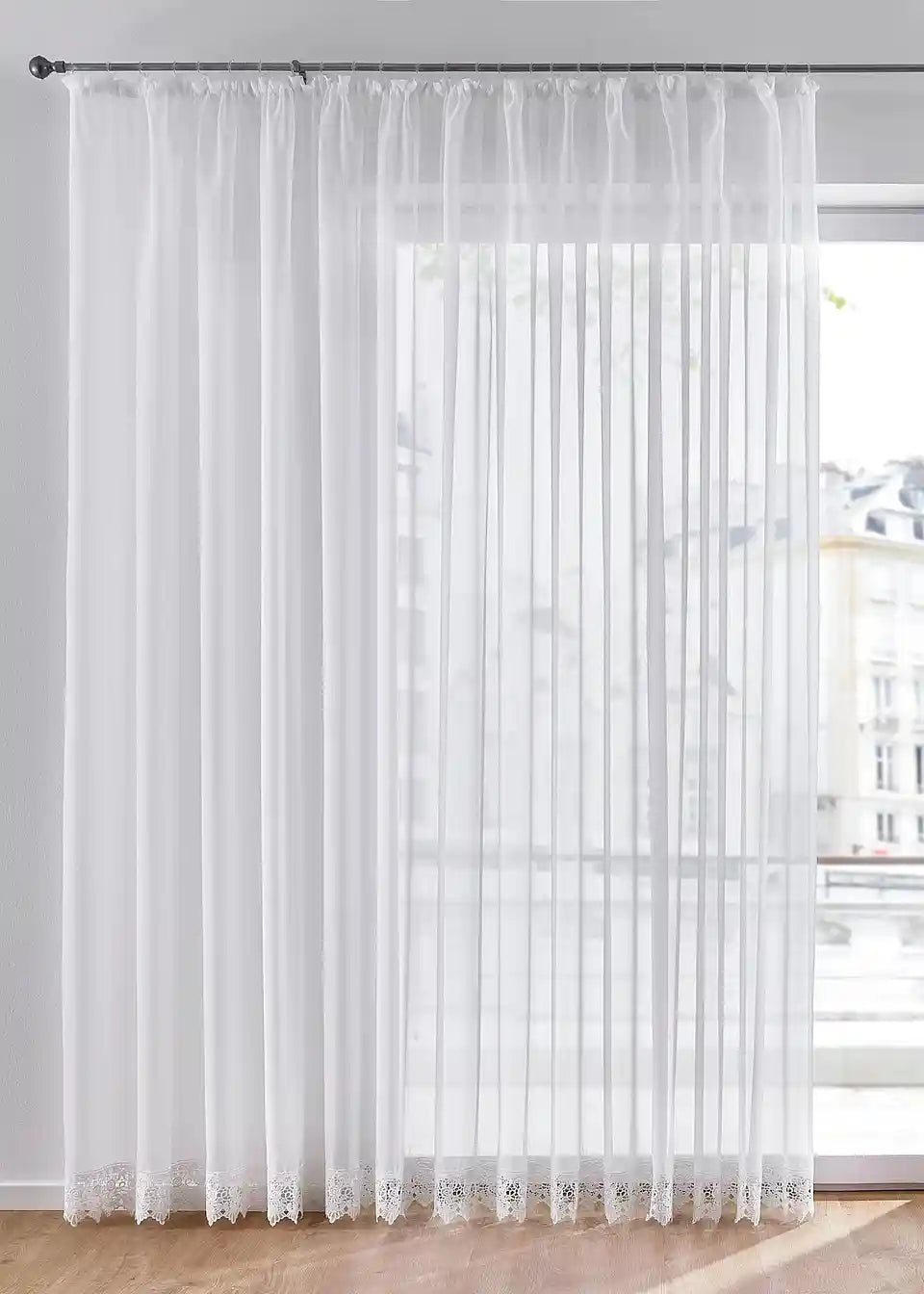 Prosojna zavesa z dekorativno čipkasto obrobo