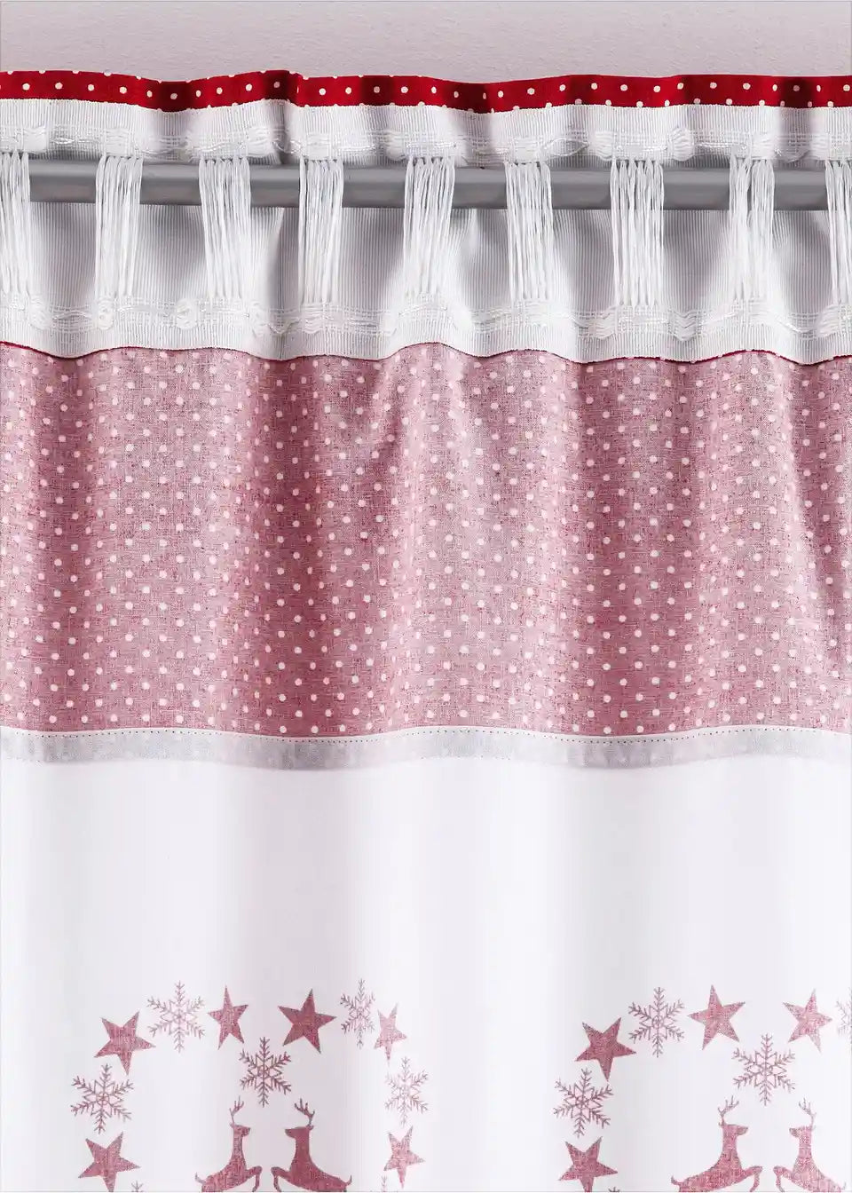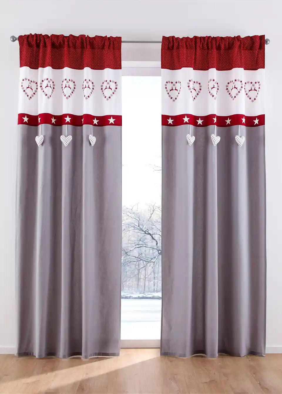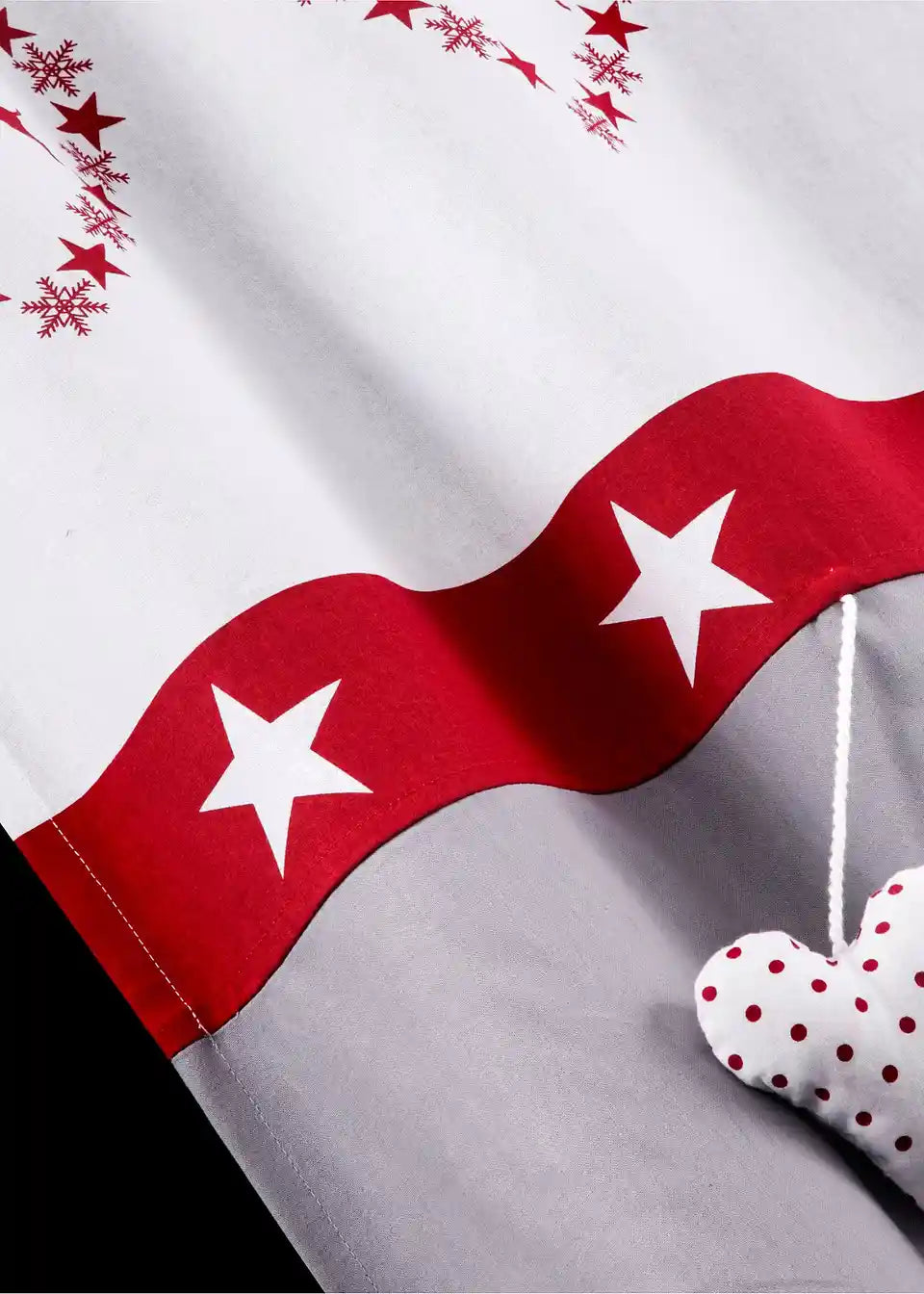 Božična zavesa z izstopajočimi 3D srčki in modernim potiskom iz čistega ekološkega bombaža.