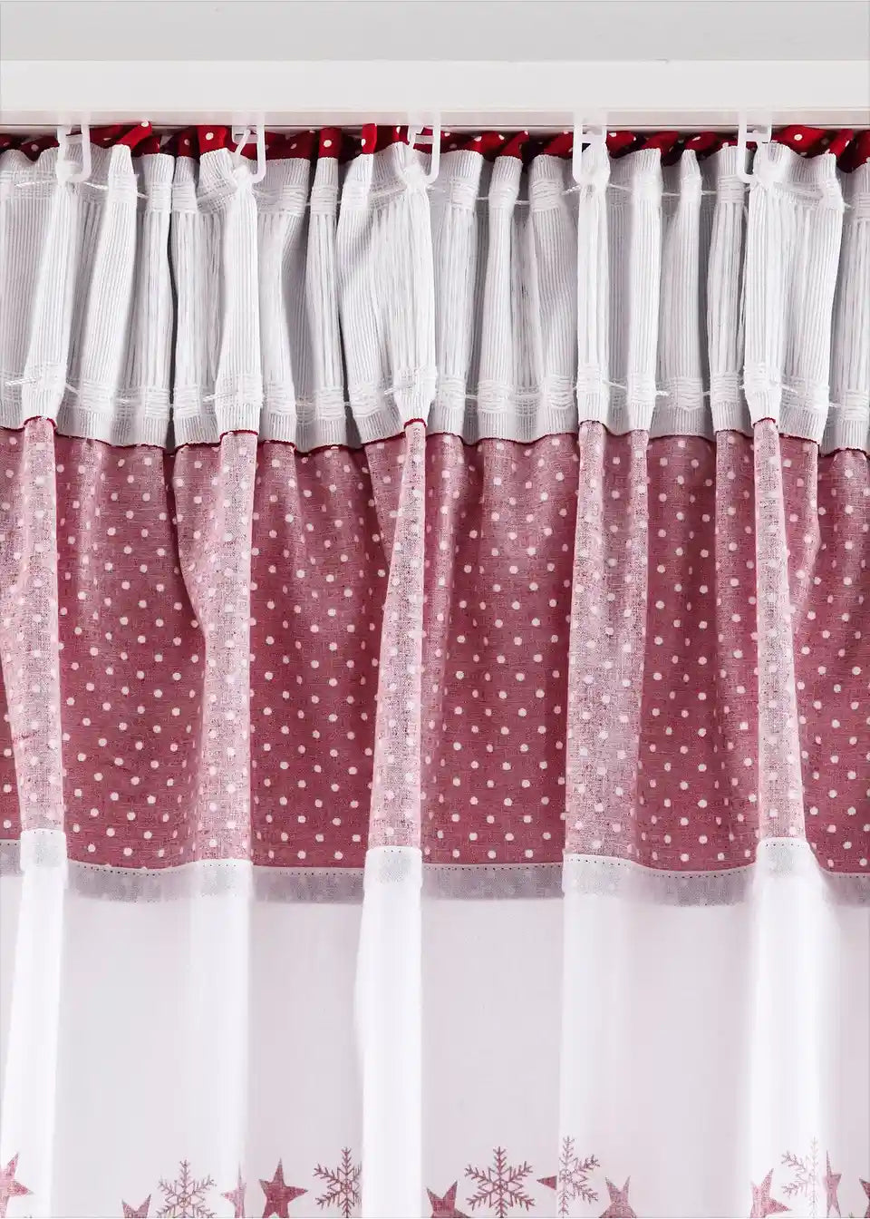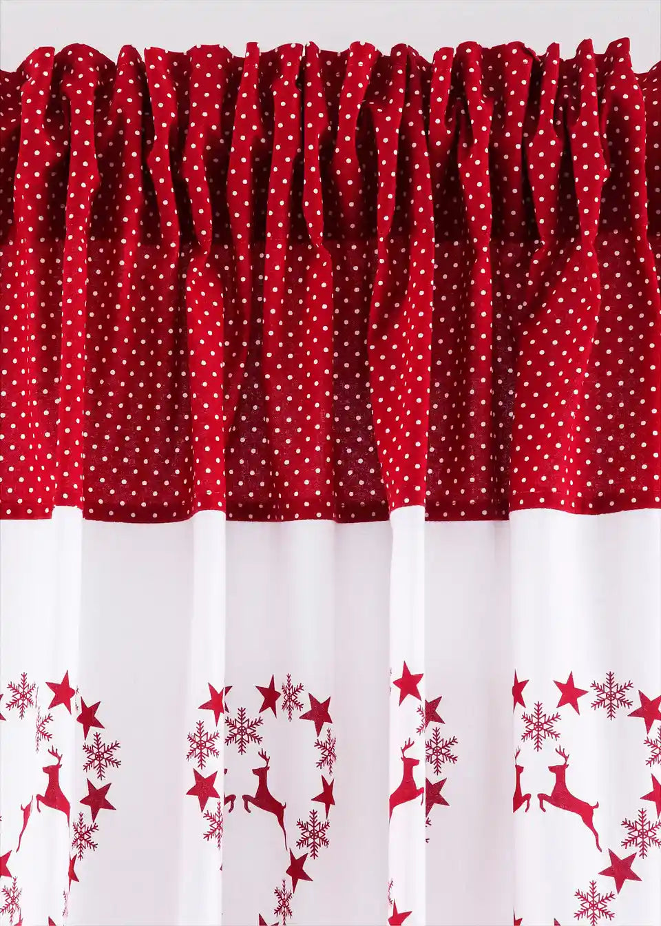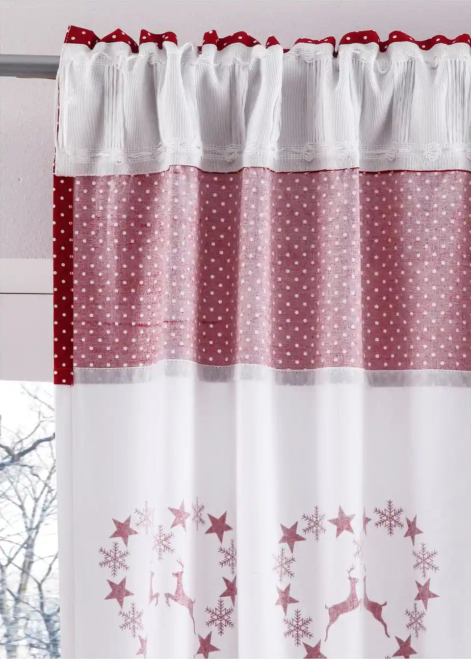 Božična zavesa z izstopajočimi 3D srčki in modernim potiskom iz čistega ekološkega bombaža.