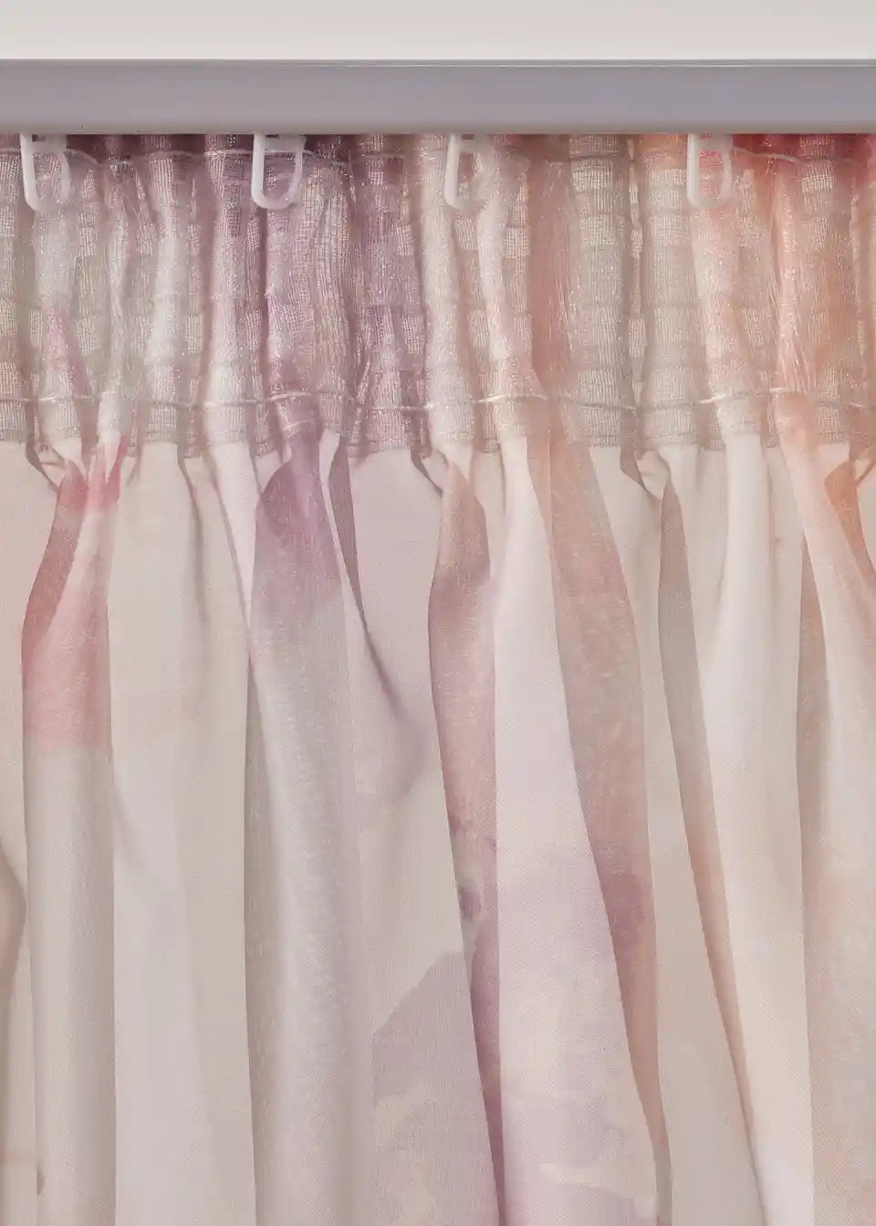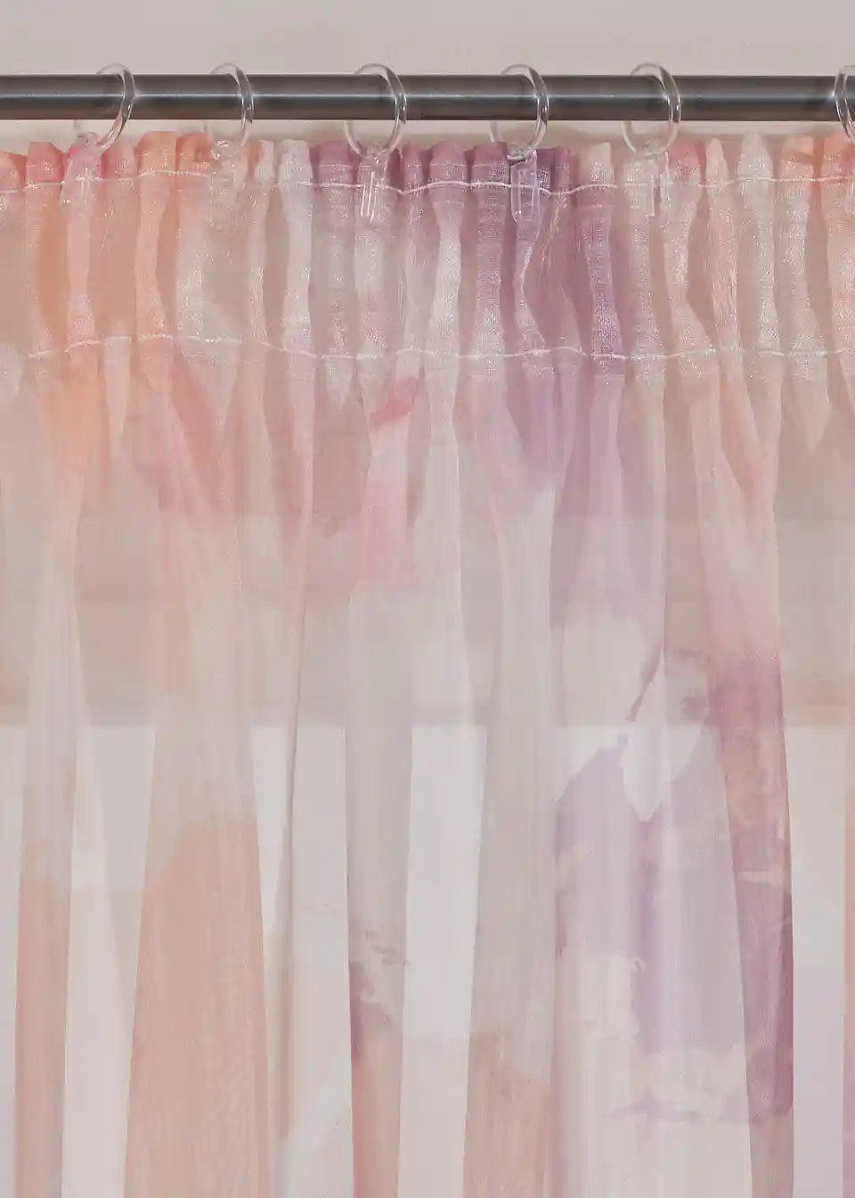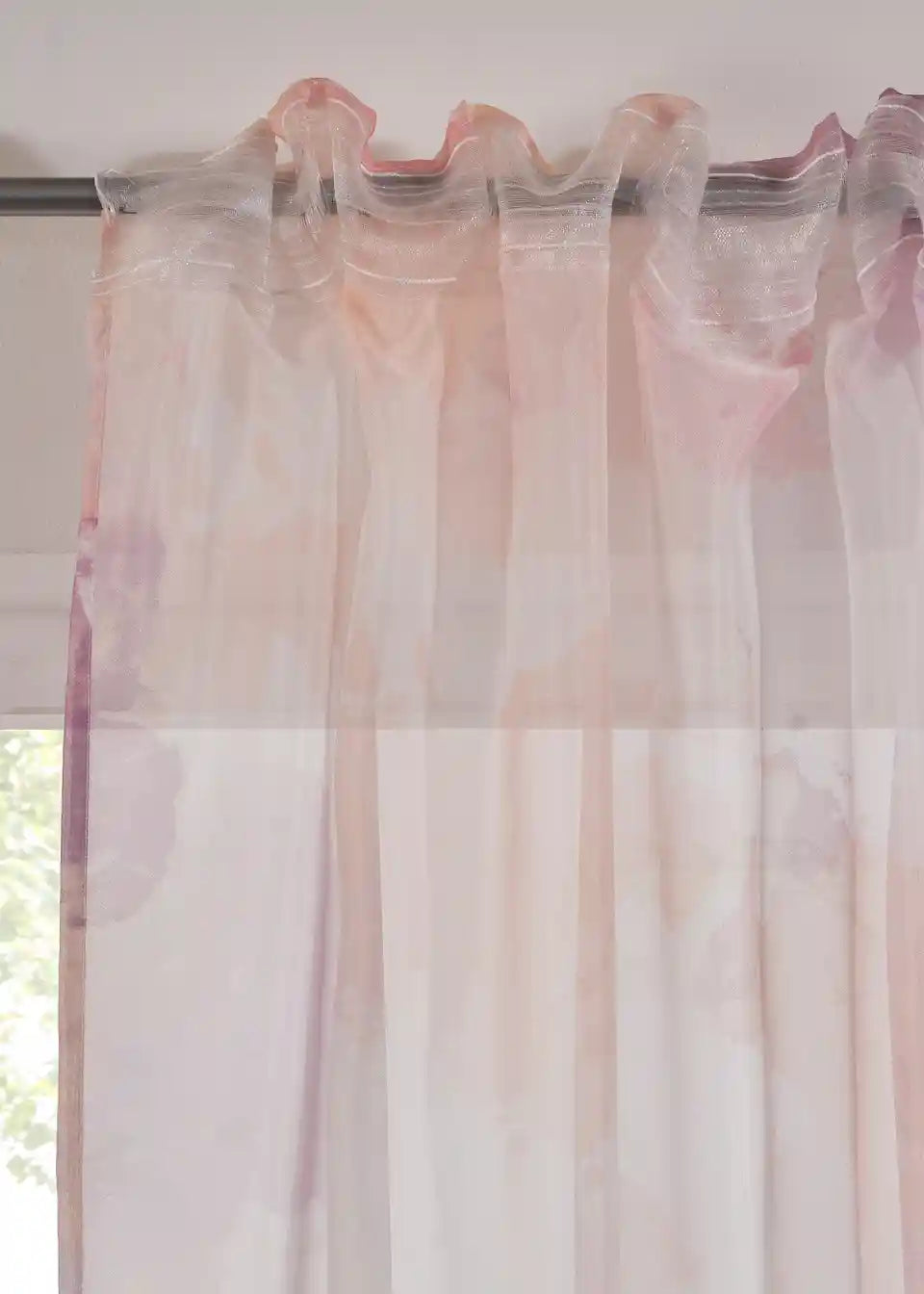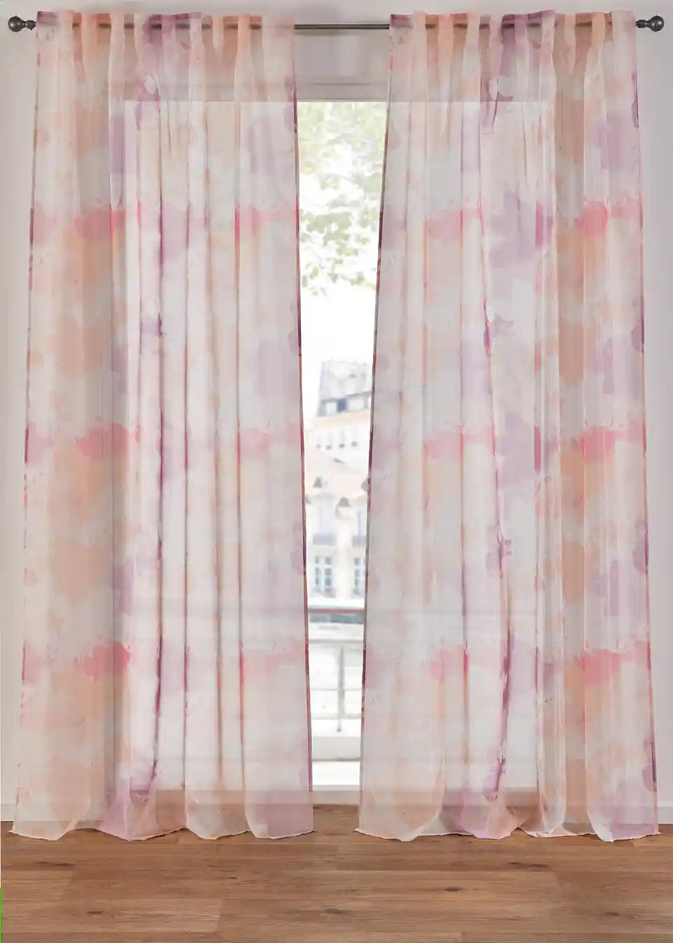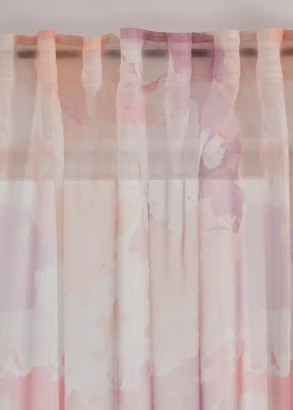 Prosojna zavesa v praktičnem 2-delnem kompletu s sodobnim tiskom. Lahka in zračna tkanina voile.