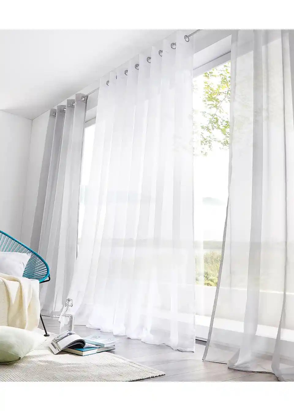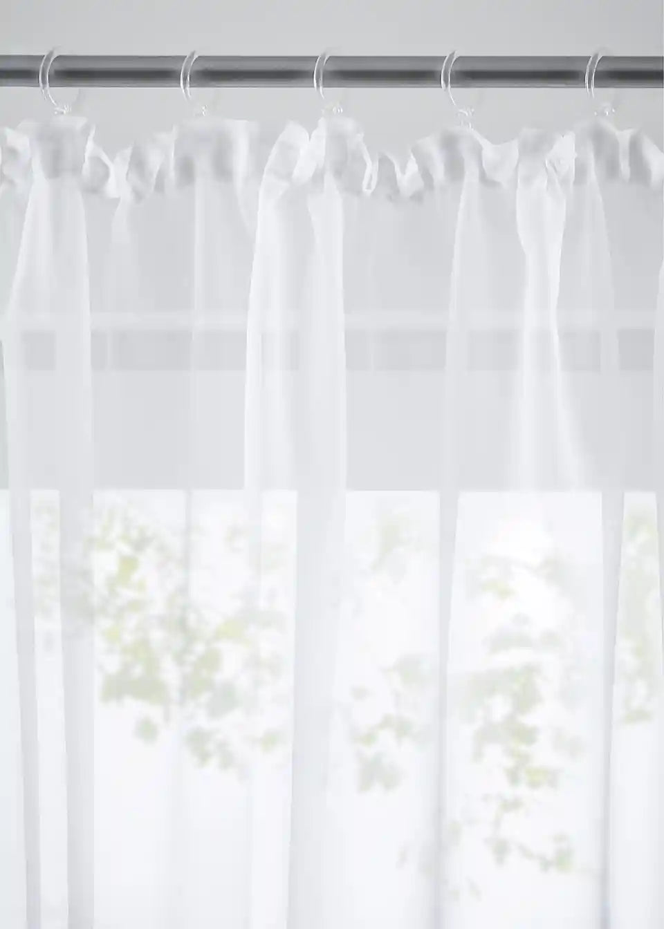 Ta zavesa prepriča s svojo preprostostjo. Elegantna okenska dekoracija iz fine tkanine voile ima zaradi všite diskretne obtežilne vrvice čudovit padec. Priporočamo naročilo 3-kratne širine okna.