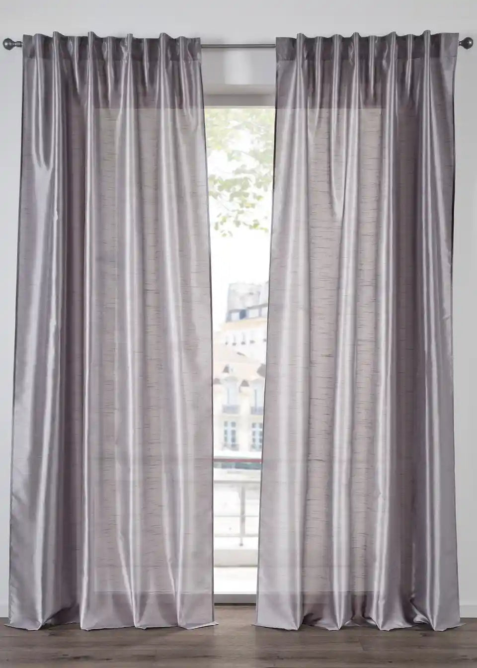 Zavesa ima eleganten videz z rahlim leskom. Je enobarvna in jo je mogoče kombinirati s številnimi slogi.
