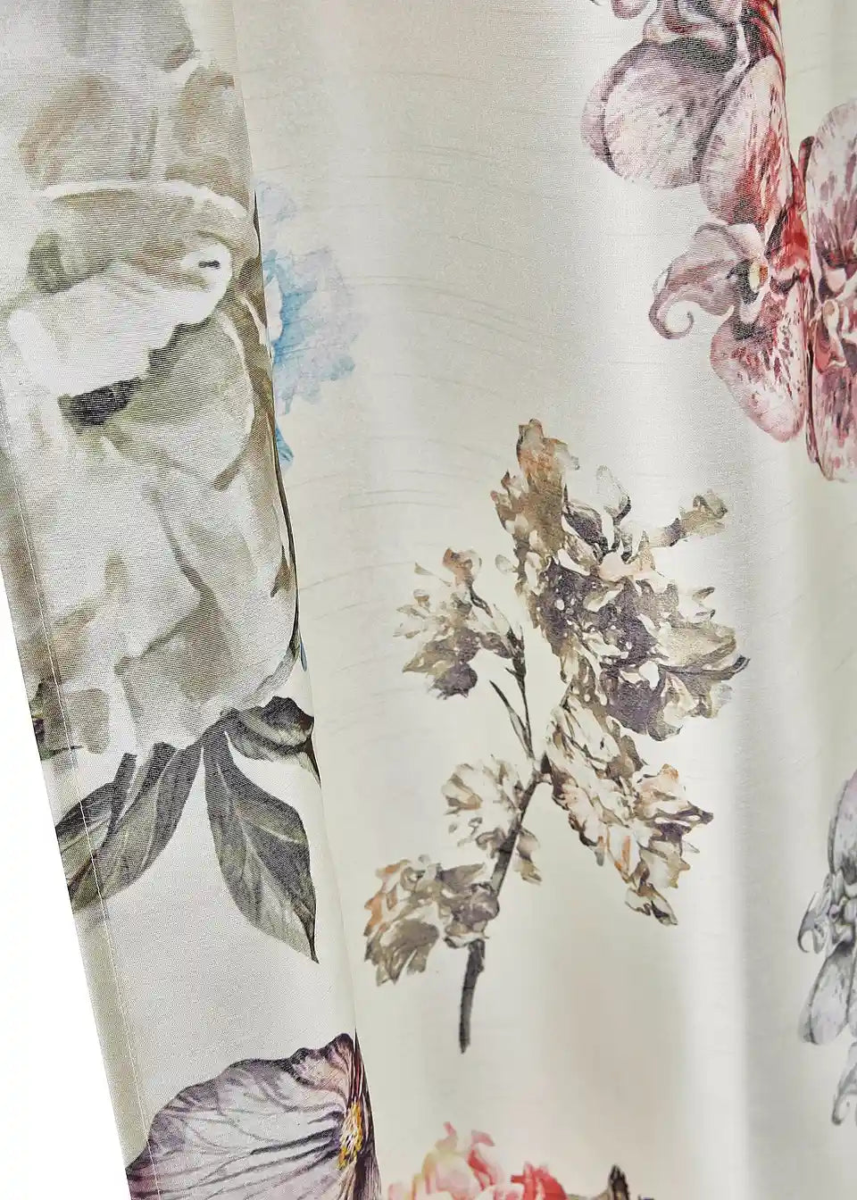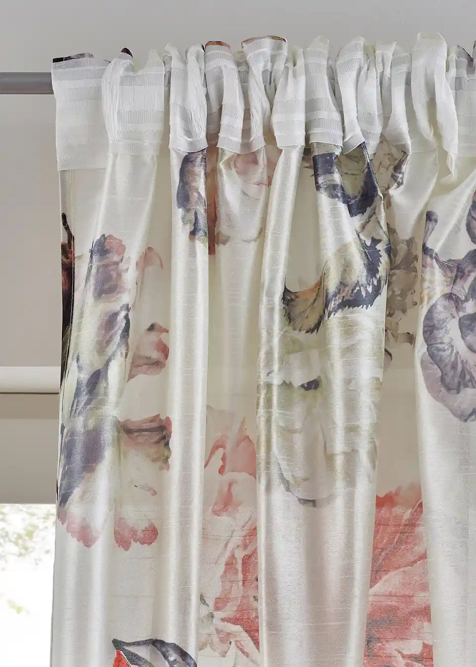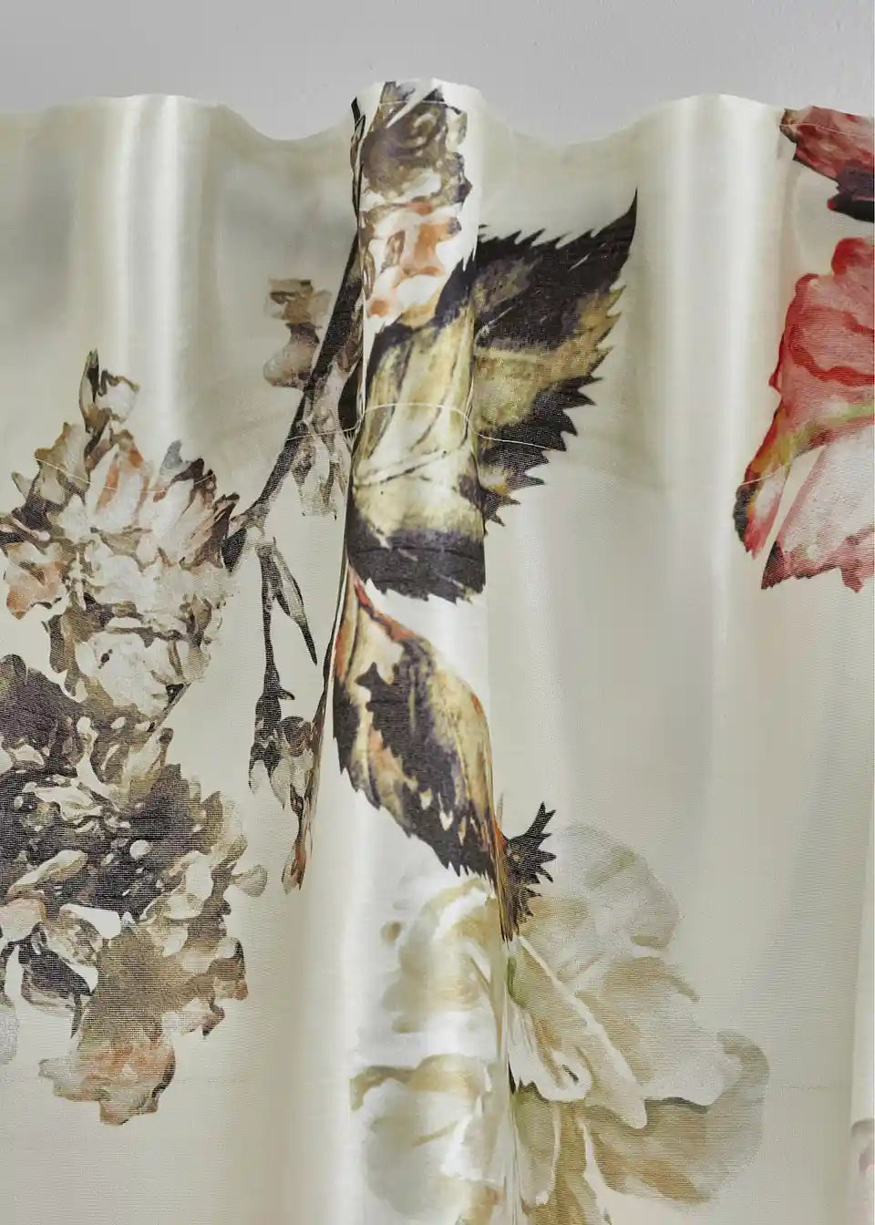 Če imate radi romantičen stil, je ta zavesa prava izbira. Na sprednji strani ima cvetlični tisk v toplih tonih. Material v svilenem videzu ima rahel sijaj. Z zaveso boste okrasili svoje okno in prinesli toplo atmosfero v svoje prostore.