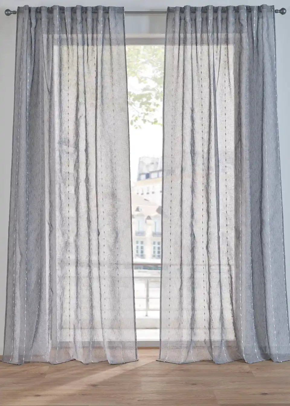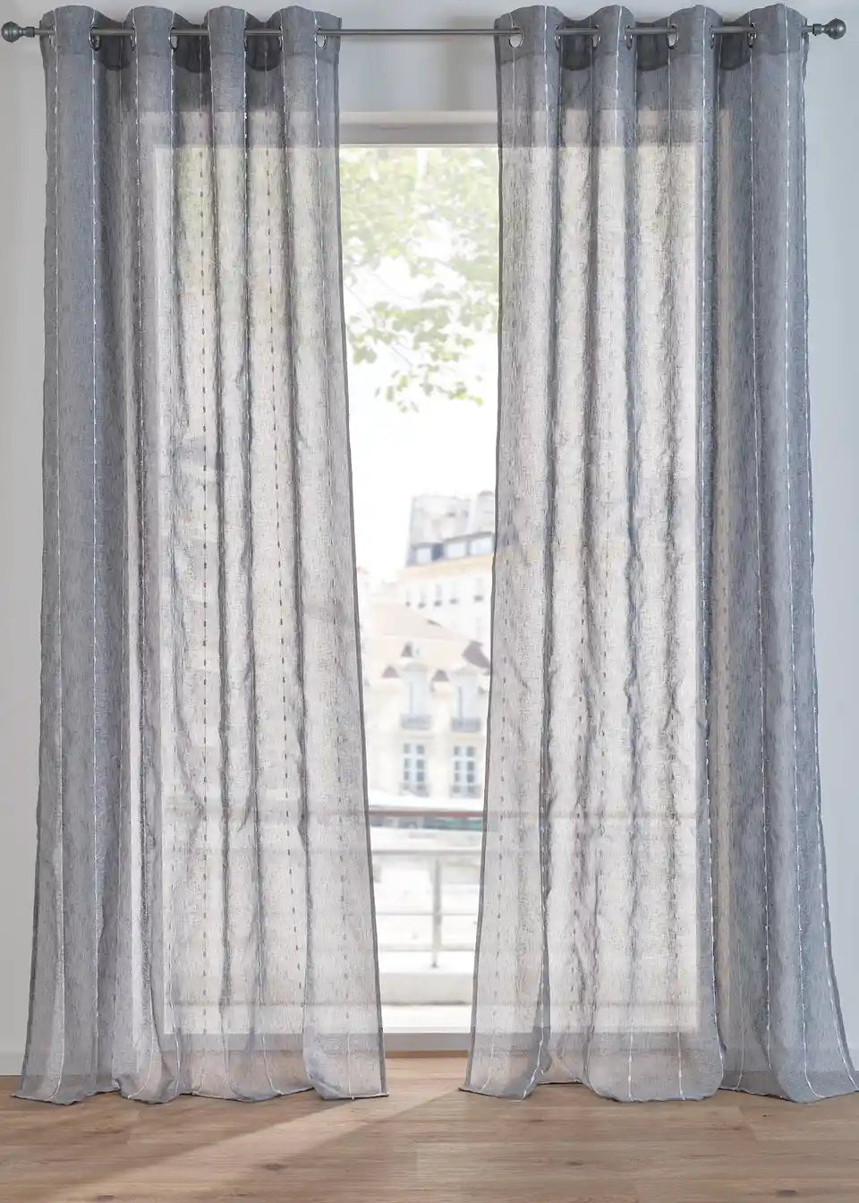 Zavesa ima sodoben videz z vtkano črto. Uporabljaš jo lahko v različnih prostorih, saj se barvno lepo poda k mnogim notranjim opremam.