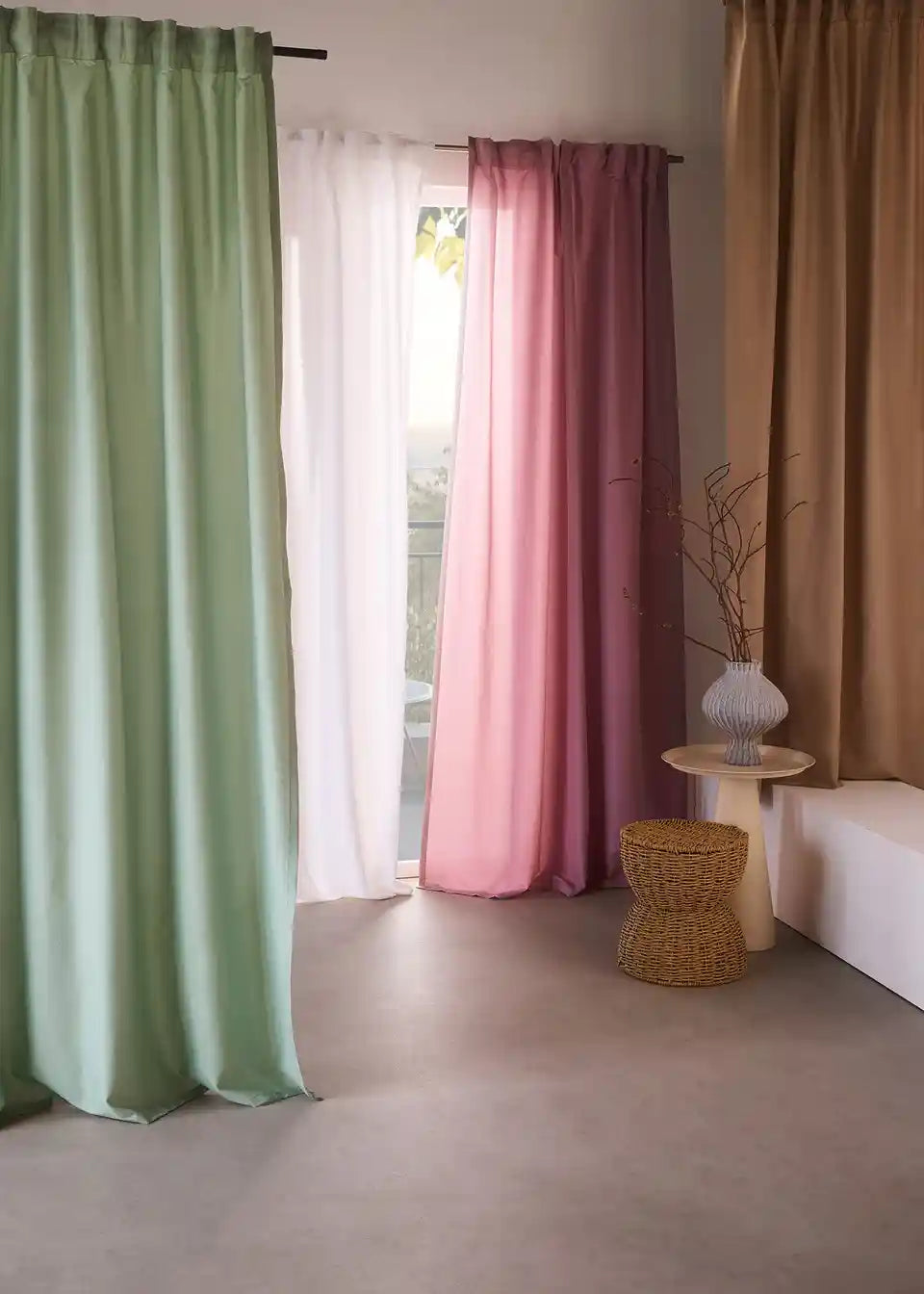 Enobarvne zavese iz mikrovlaken z deležem recikliranega poliestra so prava izbira, če imaš rada preprost in brezčasen stil. Zaradi svoje diskretne optike so univerzalno uporabne v celotnem bivalnem prostoru. Neprosojna kakovost obeh zaves prepušča dovolj svetlobe, da bivalni prostor ostane svetel in prijeten. Poleg tega so zavese na voljo v številnih privlačnih barvah. Prosto viseče kot primeren okvir za okenske površine. Dobava poteka v ugodnem paketu po 2 kosa, tj. prejmeš dve zavesi. Zaradi načina pakiranja lahko nastanejo gube. Po potrebi zlikaj pred obešanjem.