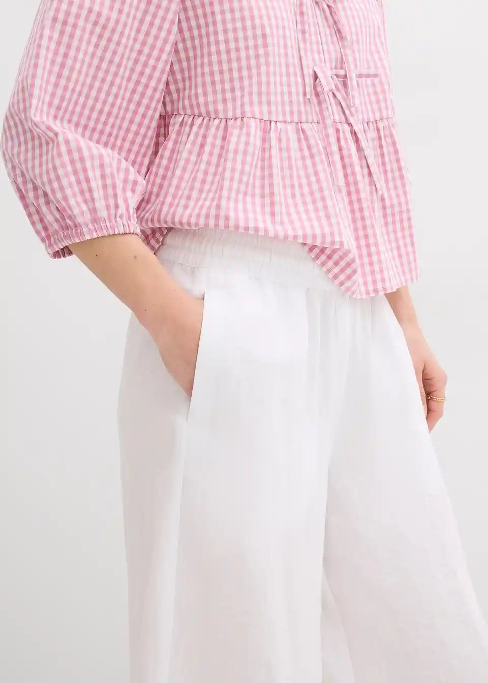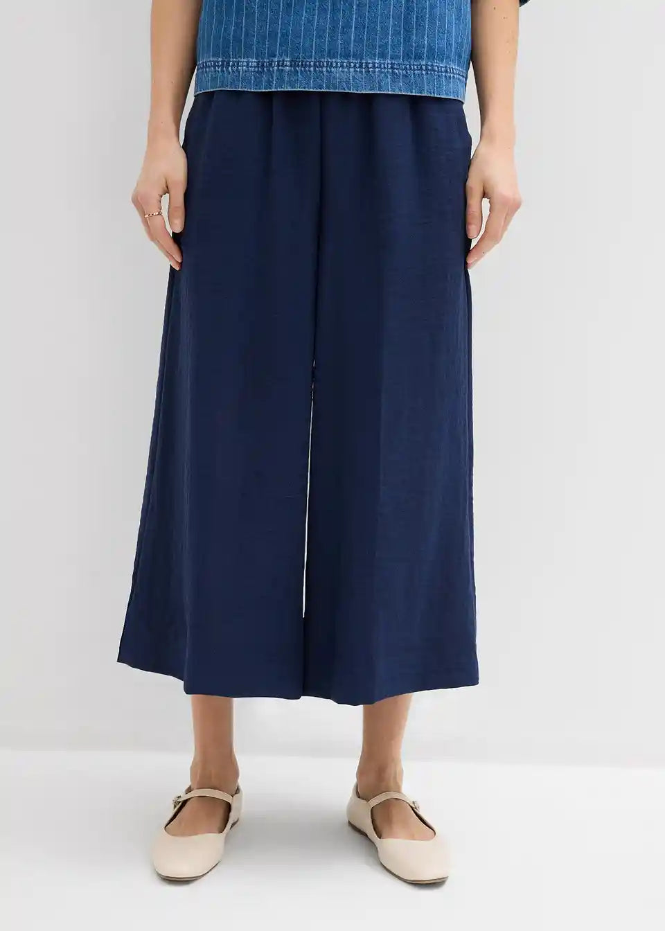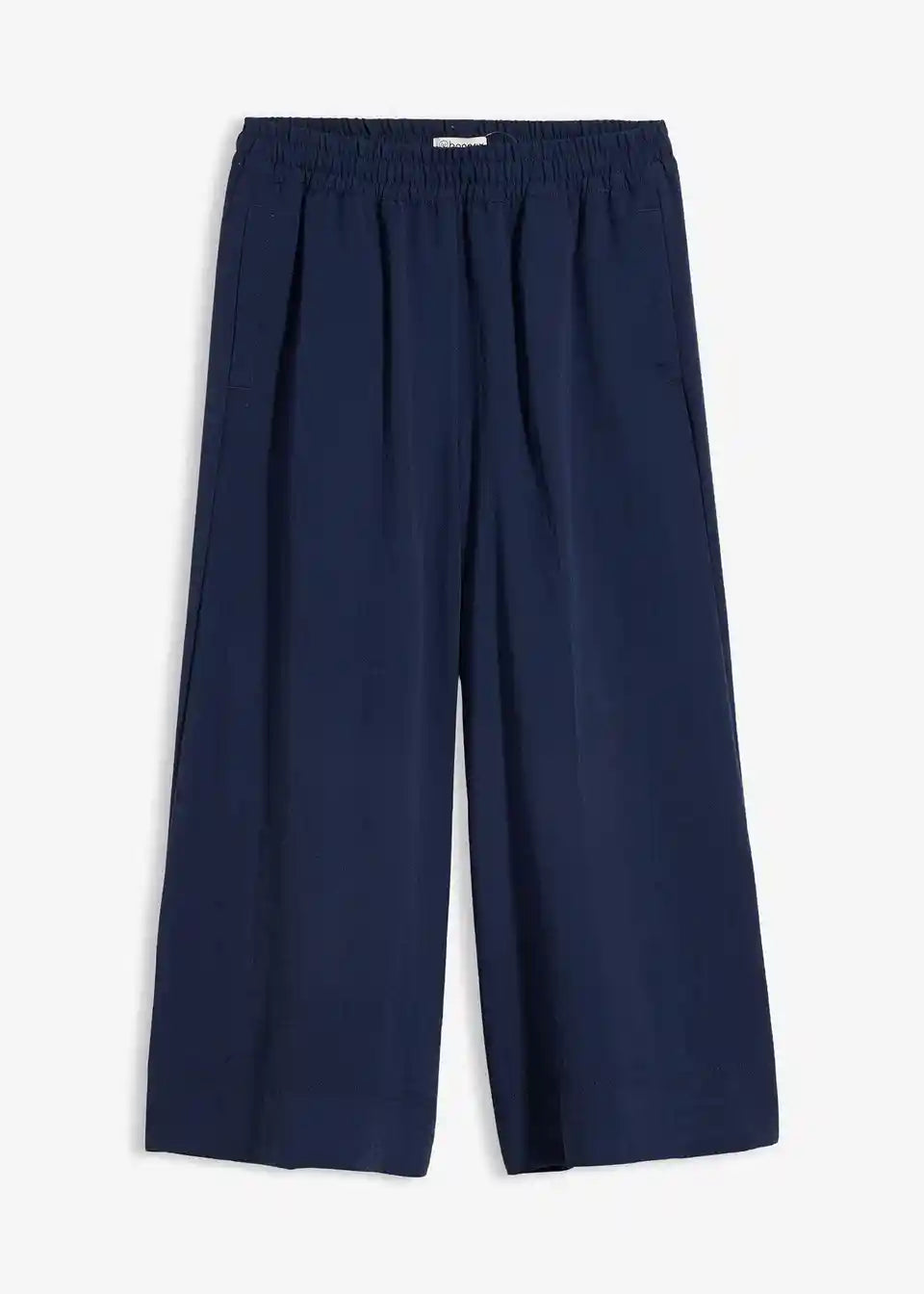 Široko krojene hlače z elastičnim pasom ter dvema stranskima všitima žepoma.