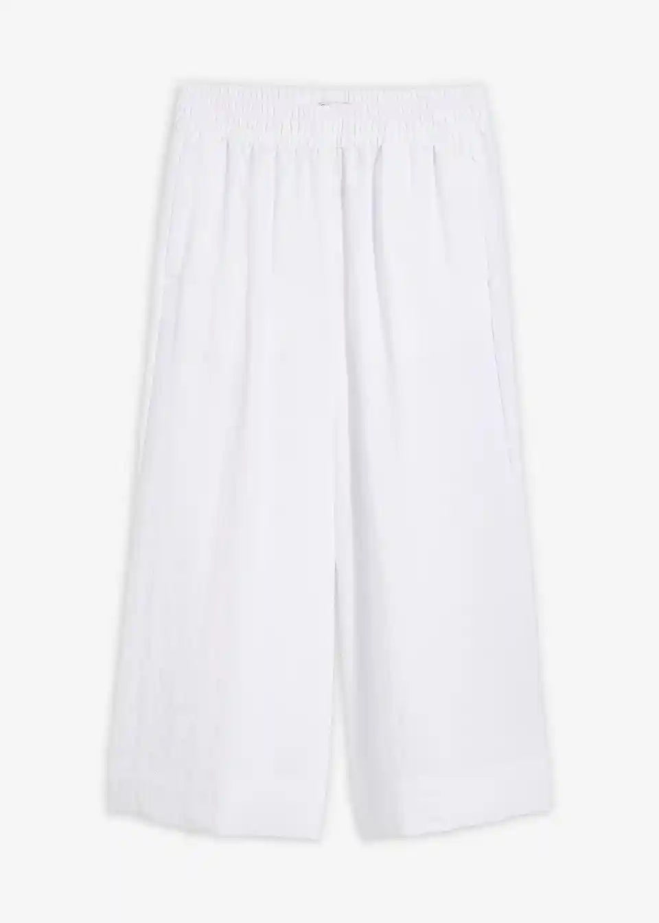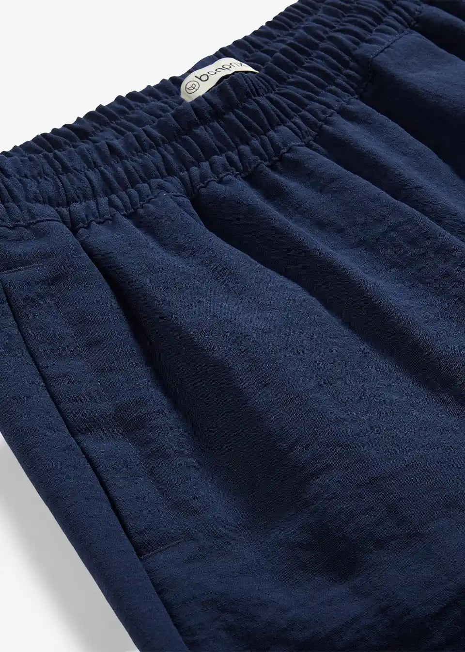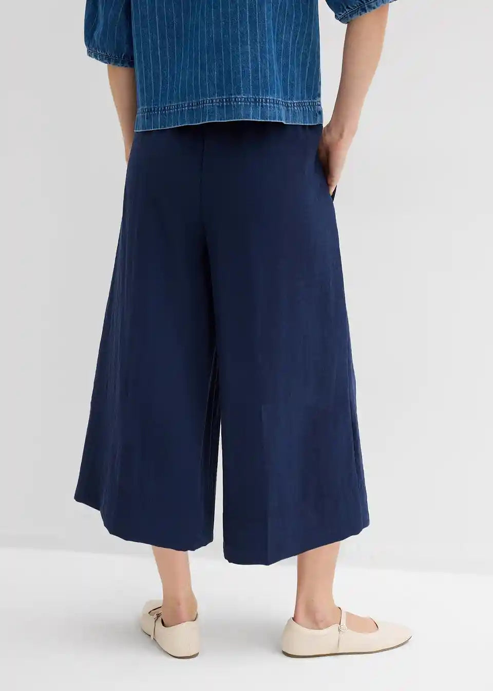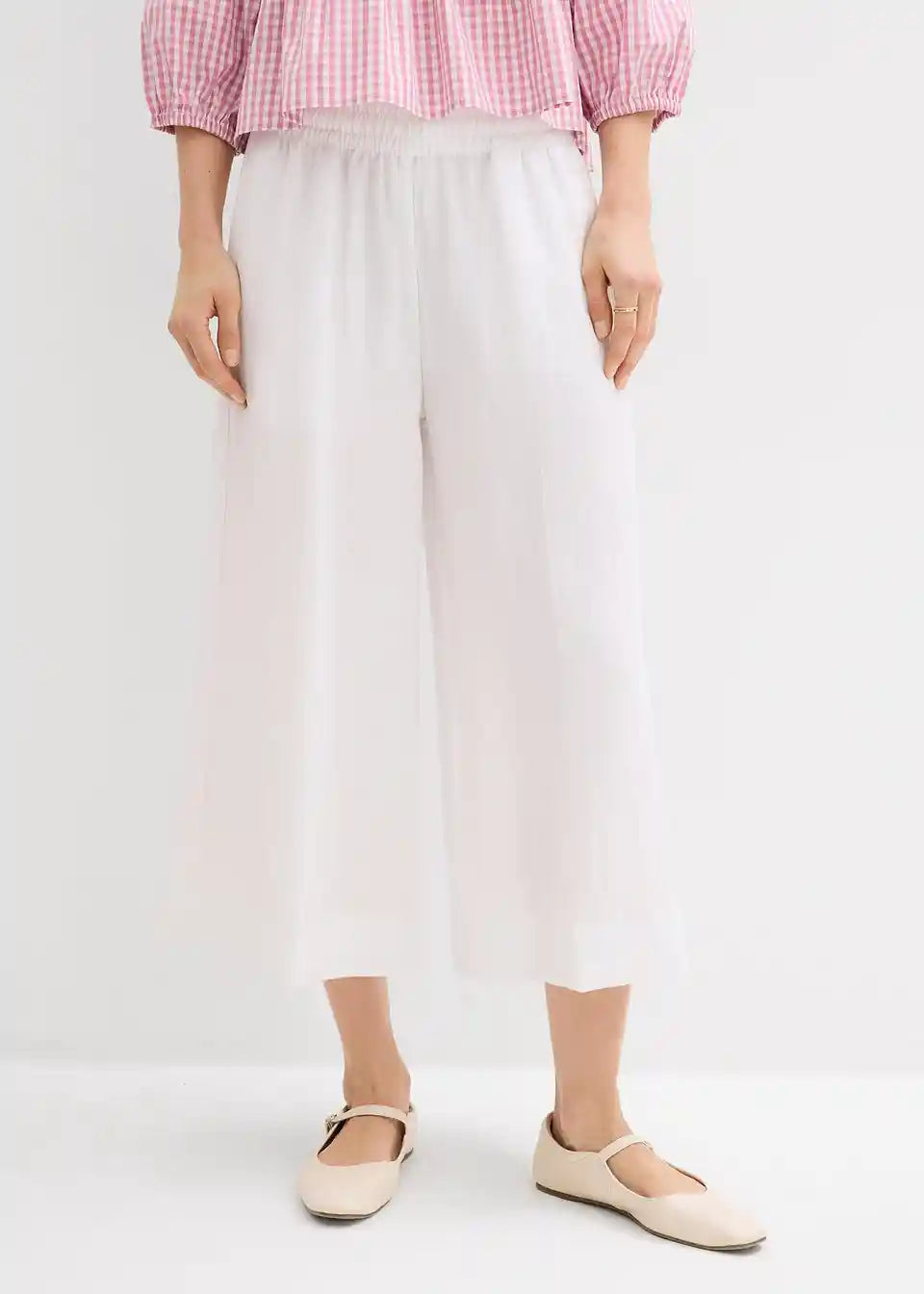 Široko krojene hlače z elastičnim pasom ter dvema stranskima všitima žepoma.