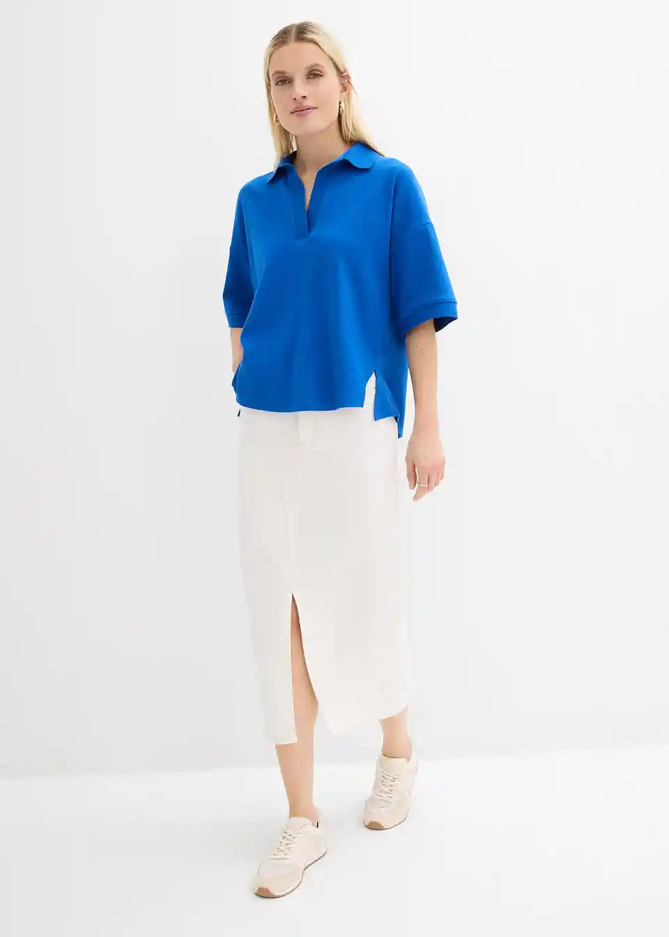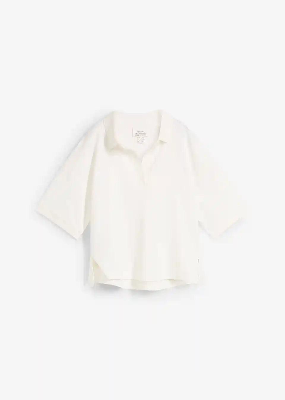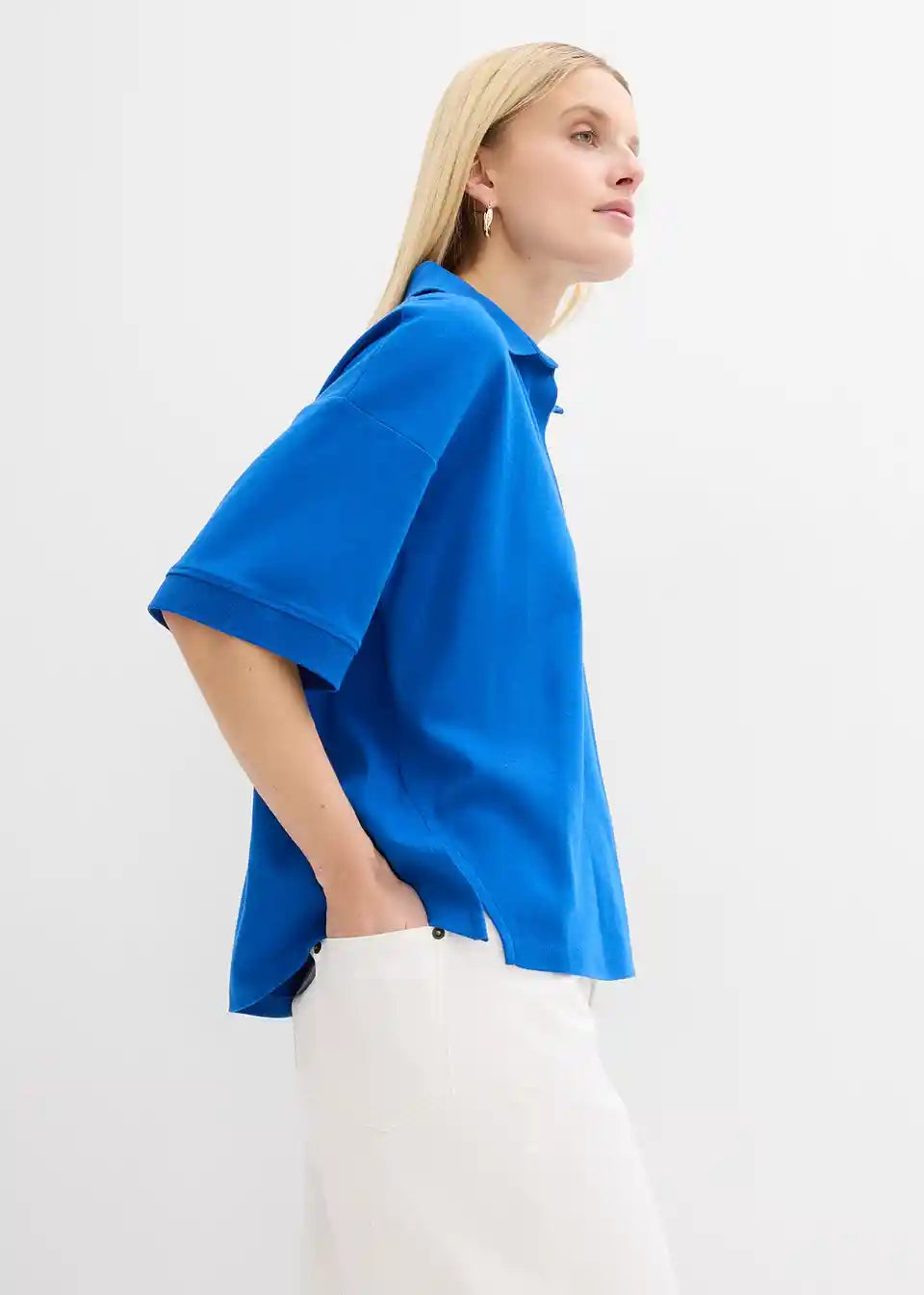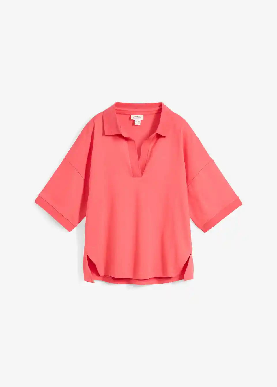 Udobna polo majica s kratkimi rokavi, rebrasto pletenim ovratnikom in V-izrezom v ohlapnem kroju