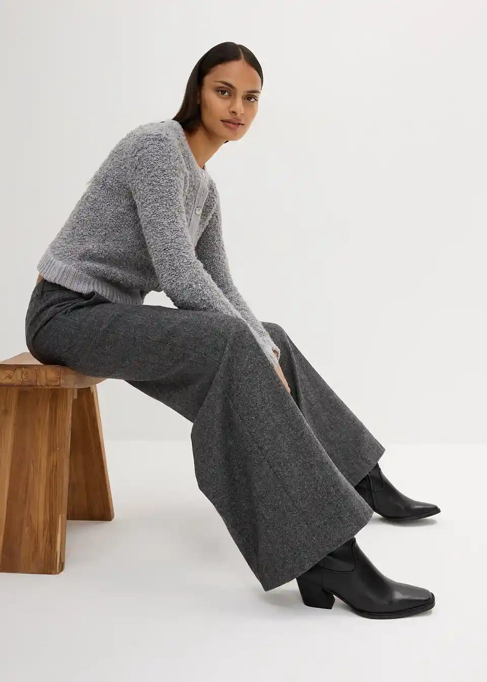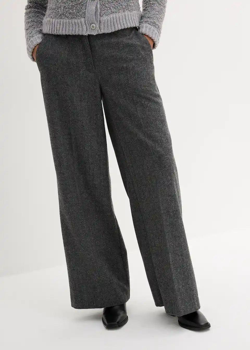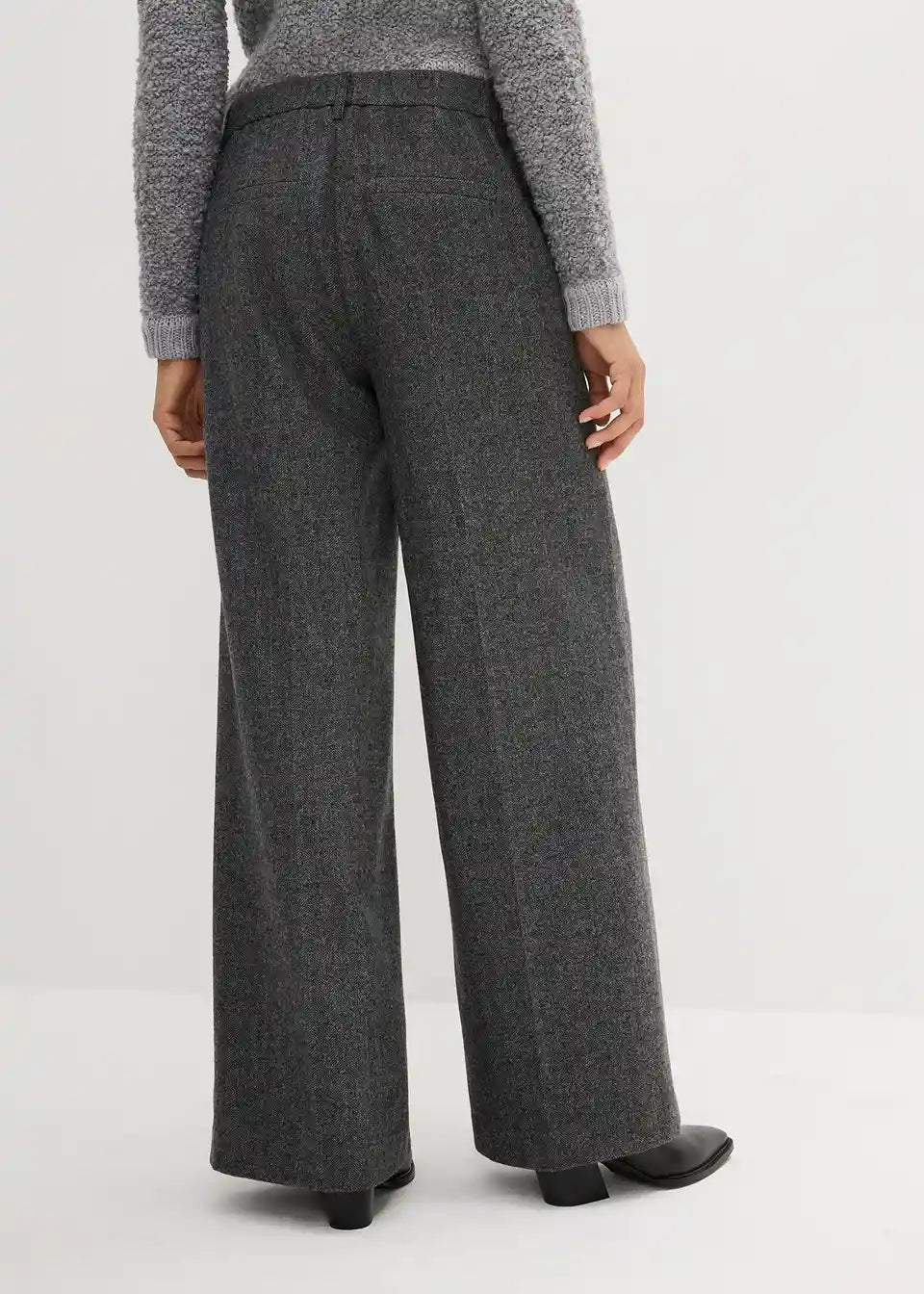 kakovostne hlače z širokimi hlačnicami in visokim deležem volne, z kolenskim podlogom
