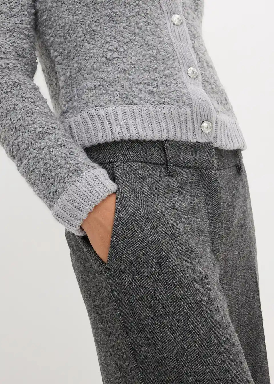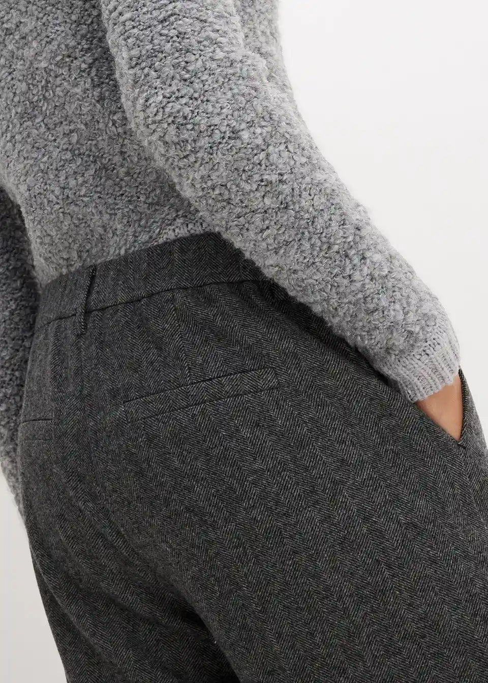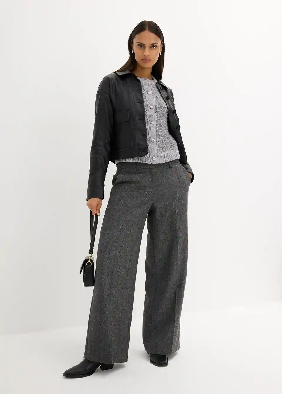 kakovostne hlače z širokimi hlačnicami in visokim deležem volne, z kolenskim podlogom