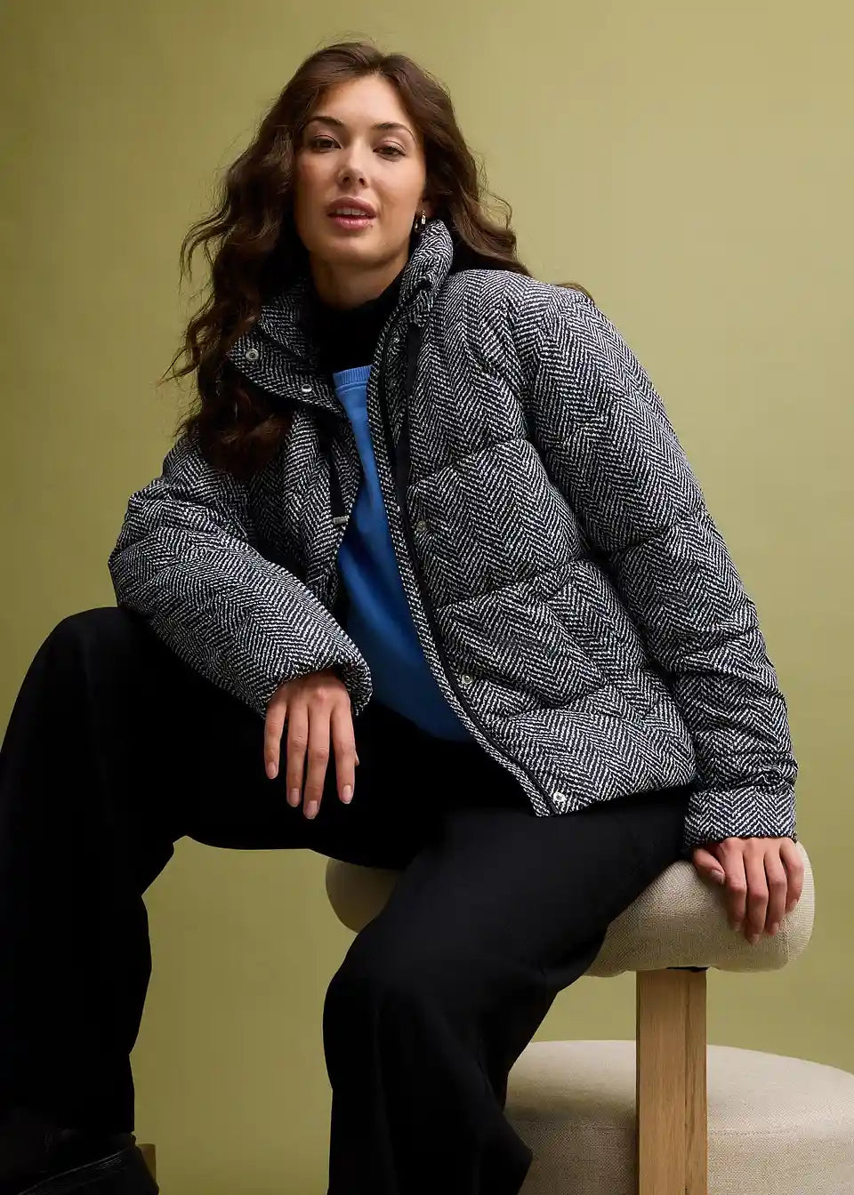 Material:zgornji material: 54% volna, 46% poliester (recikliran), podloga: 55% poliester (recikliran), 45% viskoza