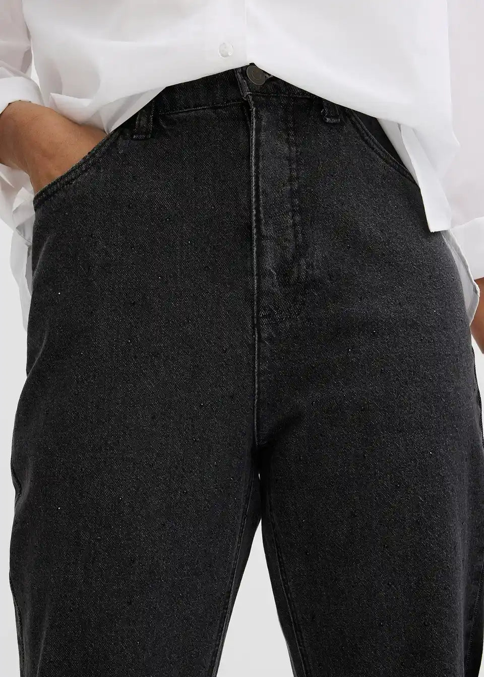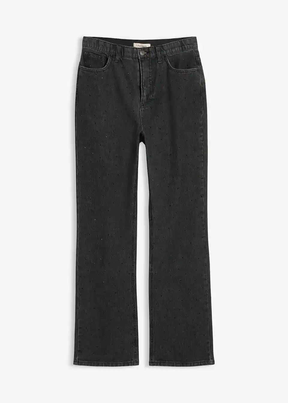 Udobne kavbojke v ravnem kroju z visokim udobnim pasom z bleščicami