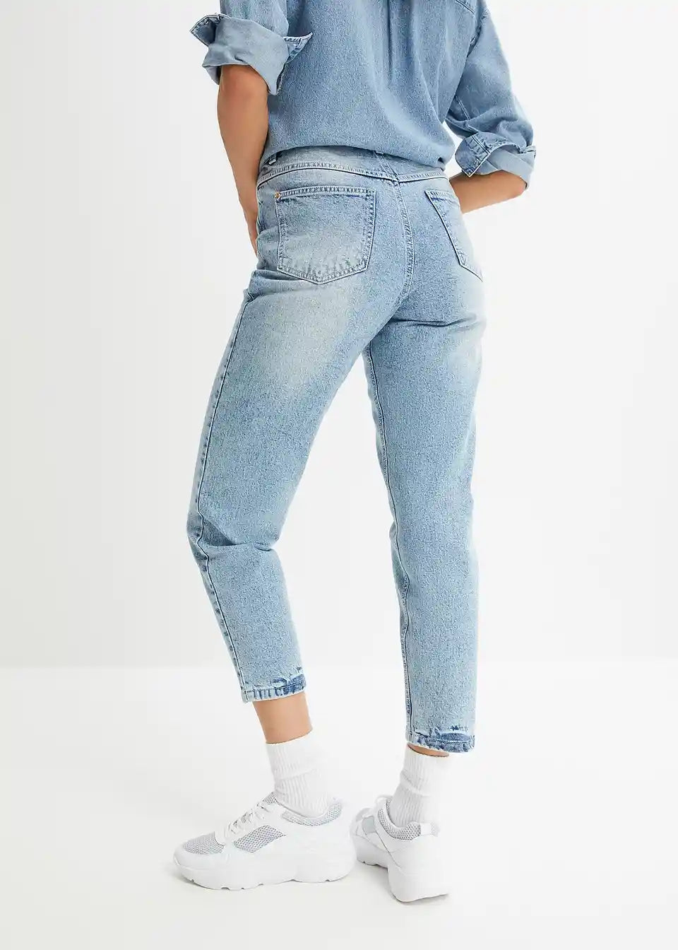 Mom kavbojke z zelo visokim pasom v krajšem kroju