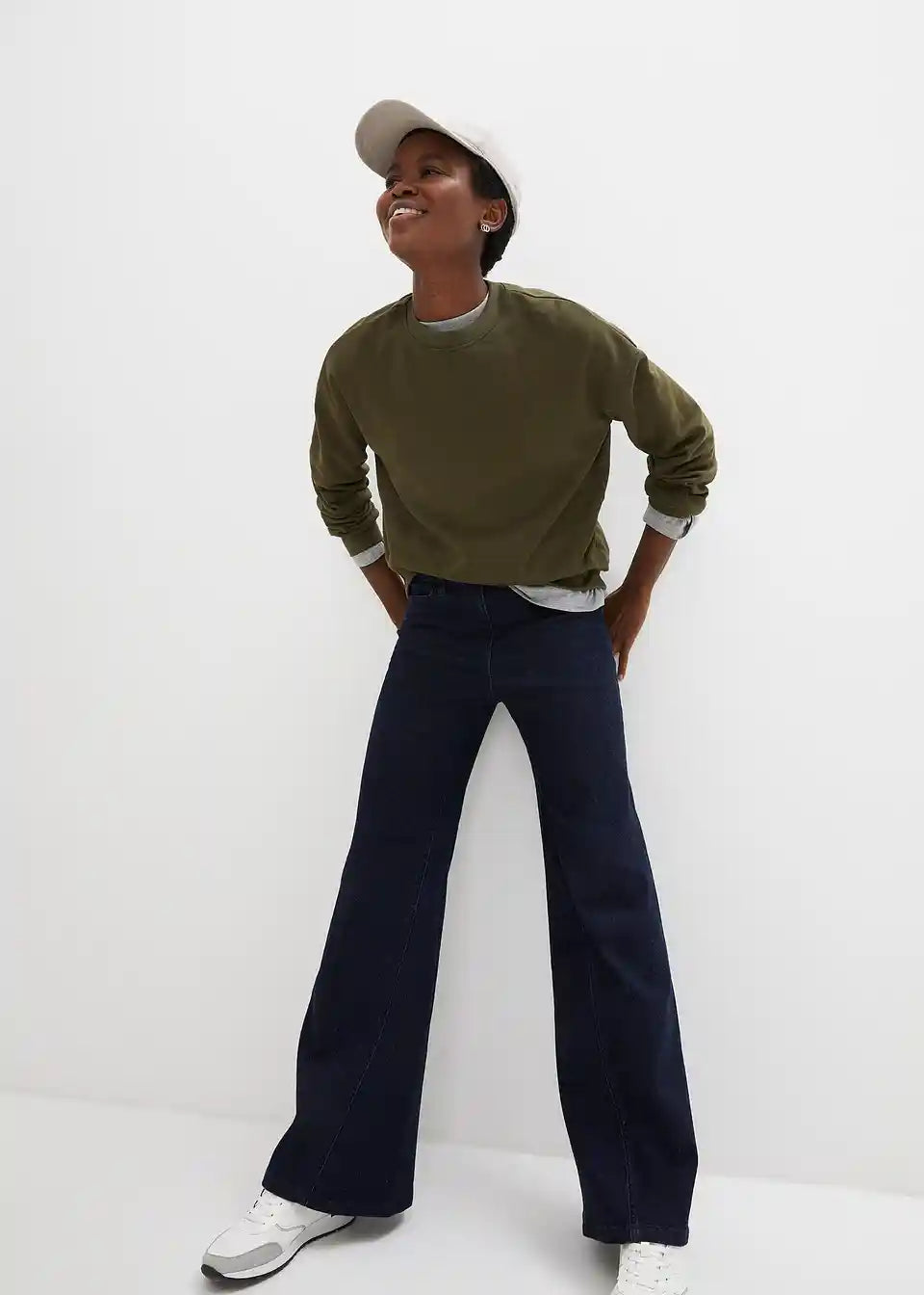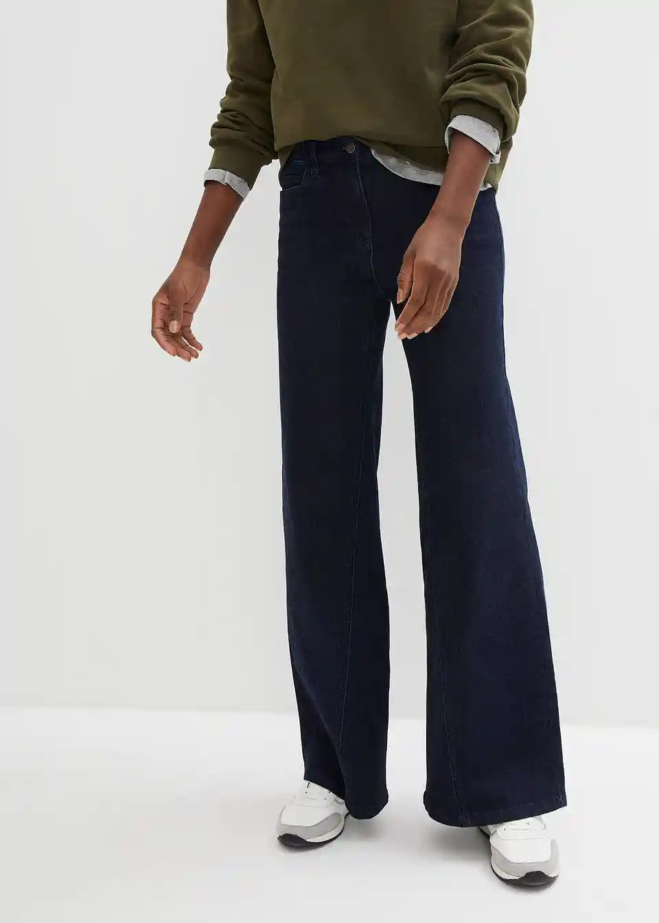 Kavbojke s širokimi hlačnicami in visokim udobnim pasom