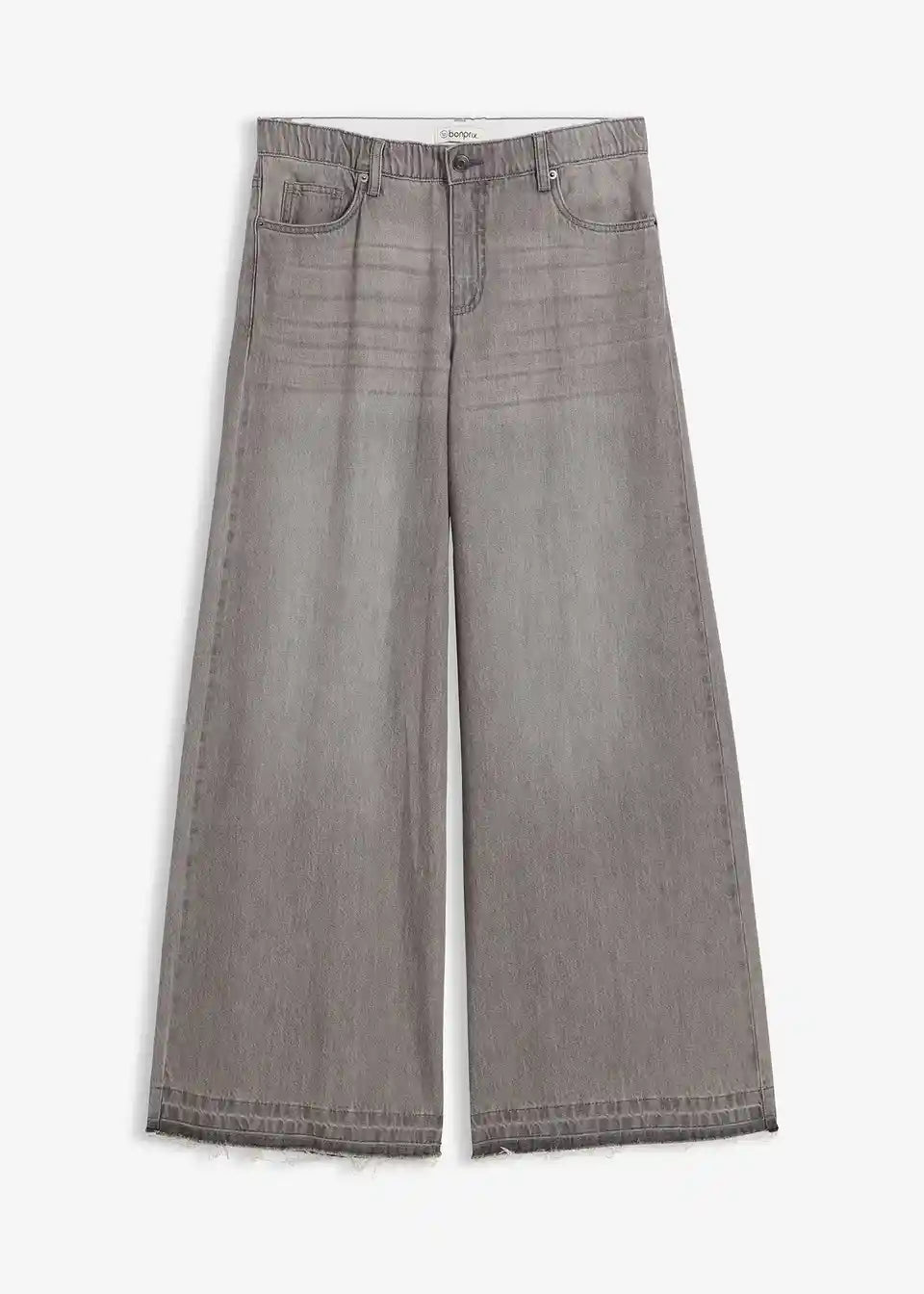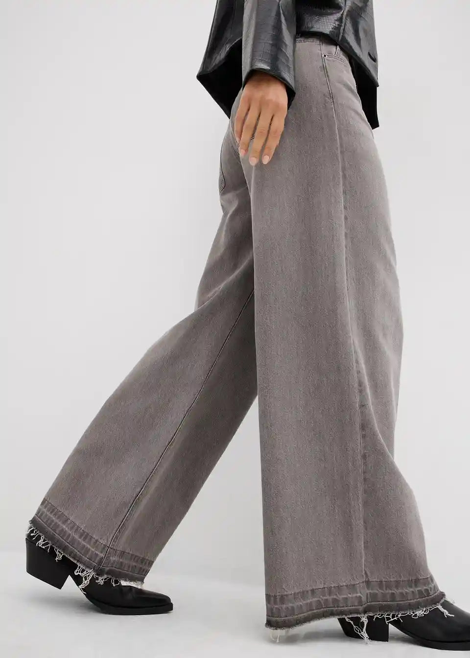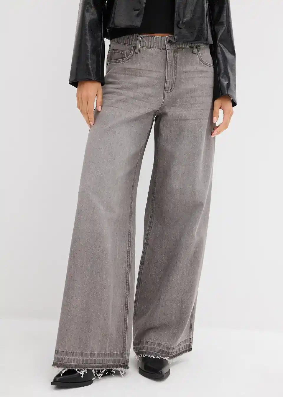 Kavbojke s širokimi hlačnicami s srednje visokim udobnim pasom