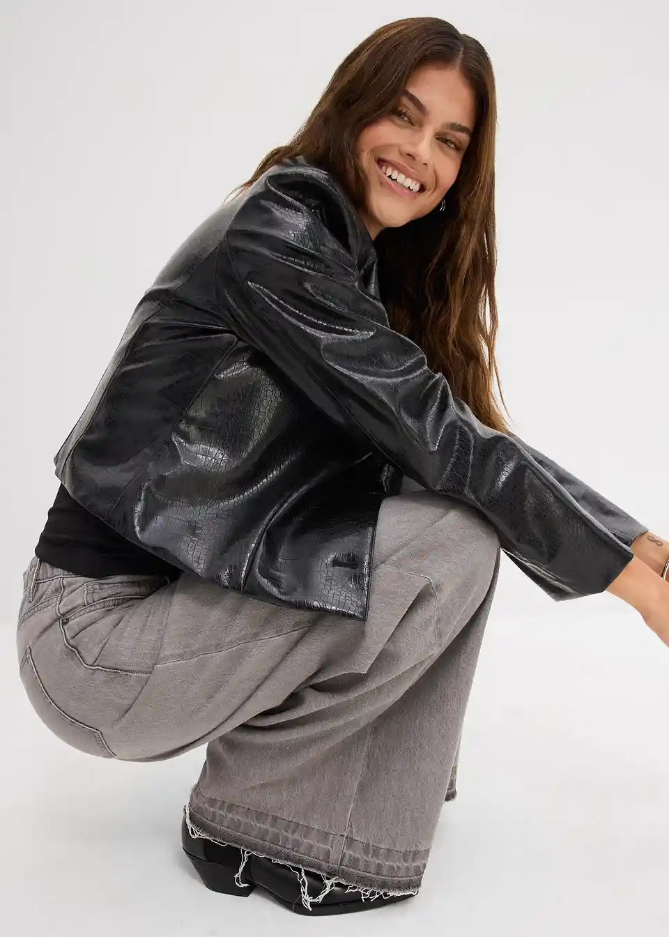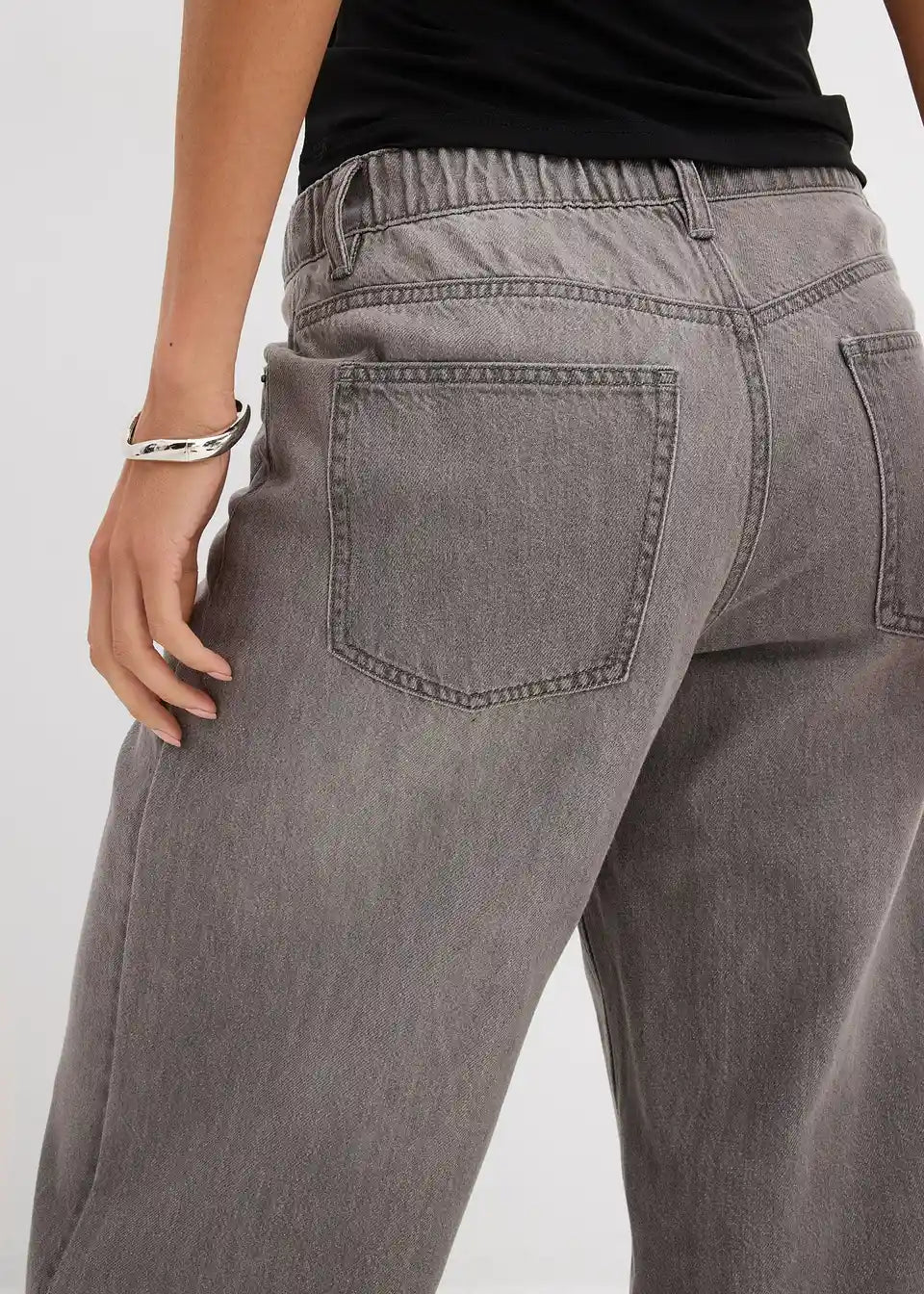 Široke kavbojke s 5 žepi z elastičnim udobnim pasom iz kompaktnega denima, ki je na začetku nekoliko tog, a postane z nošenjem mehkejši in bolj sproščen