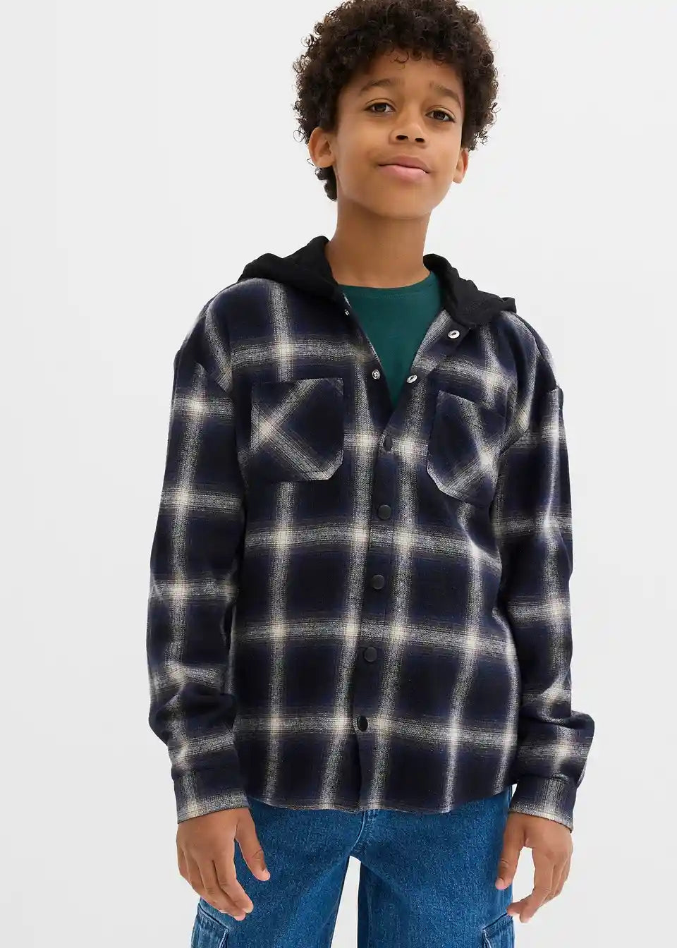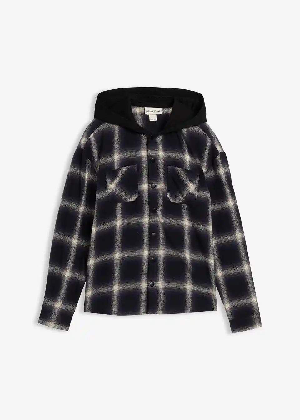 Srajca iz flanele s kapuco in dolgimi rokavi