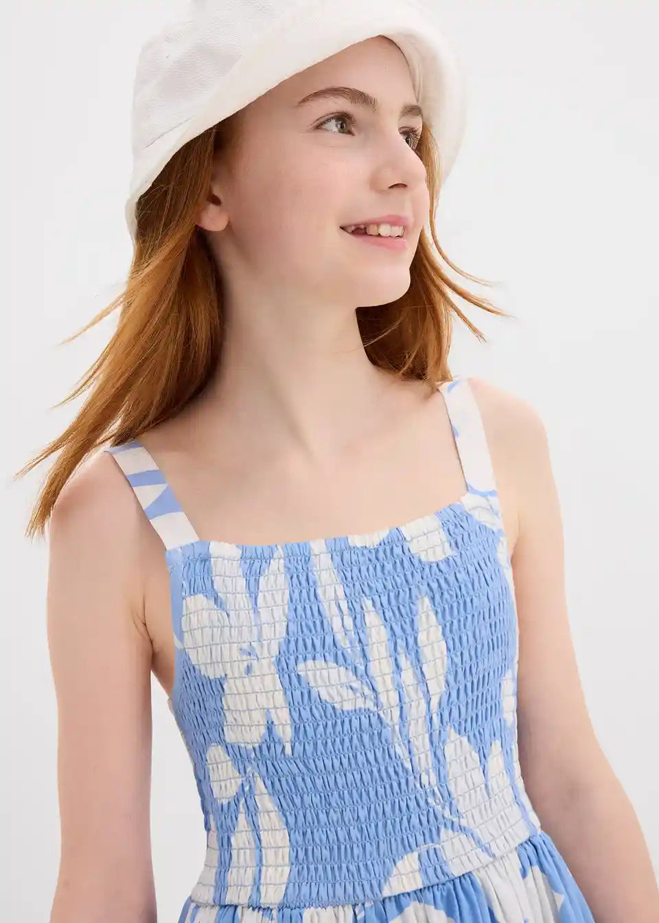 Obleka za deklice do kolen s prikupnim potiskom iz mehke viskoze