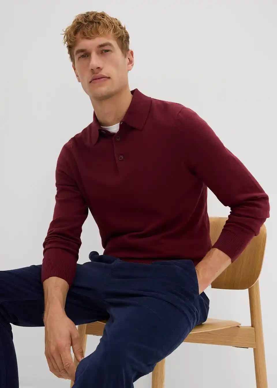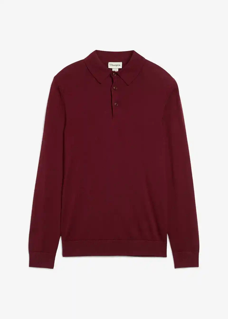 Fina pleten polo pulover s plemenito merino volno v ozkem kroju