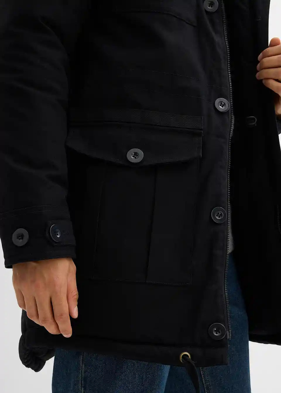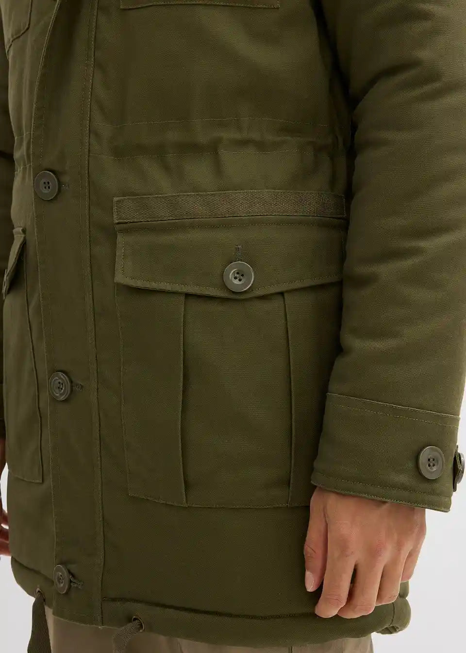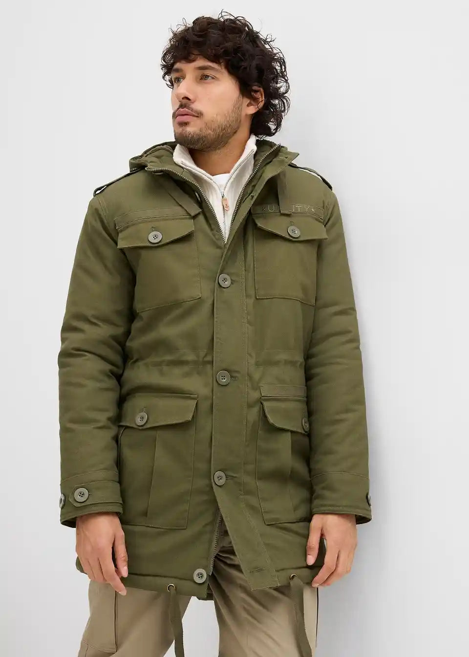 Kul vojaška parka s štirimi žepi zunaj in enim notranjim žepom