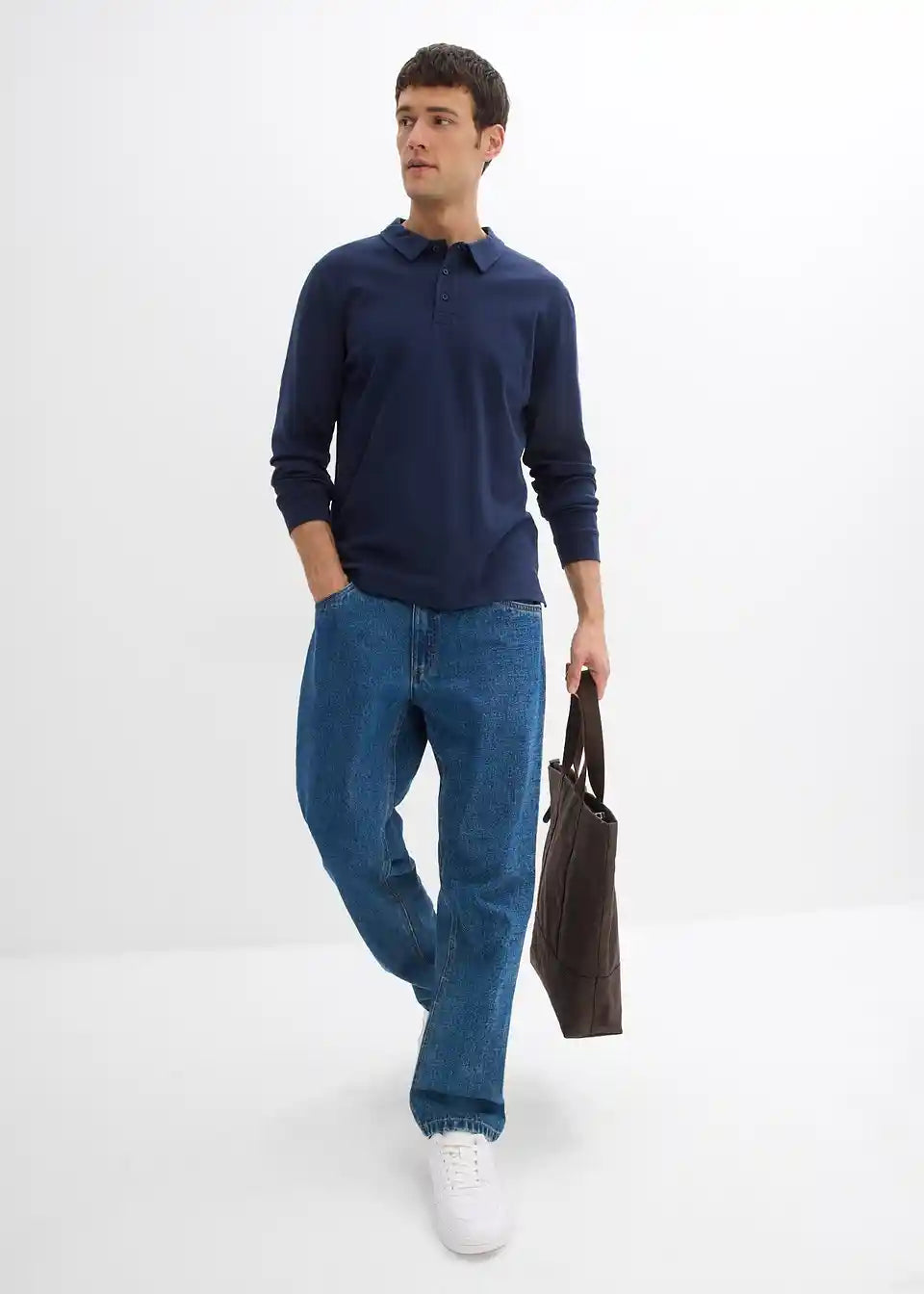 Polo majica z dolgimi rokavi iz čistega ekološkega bombaža