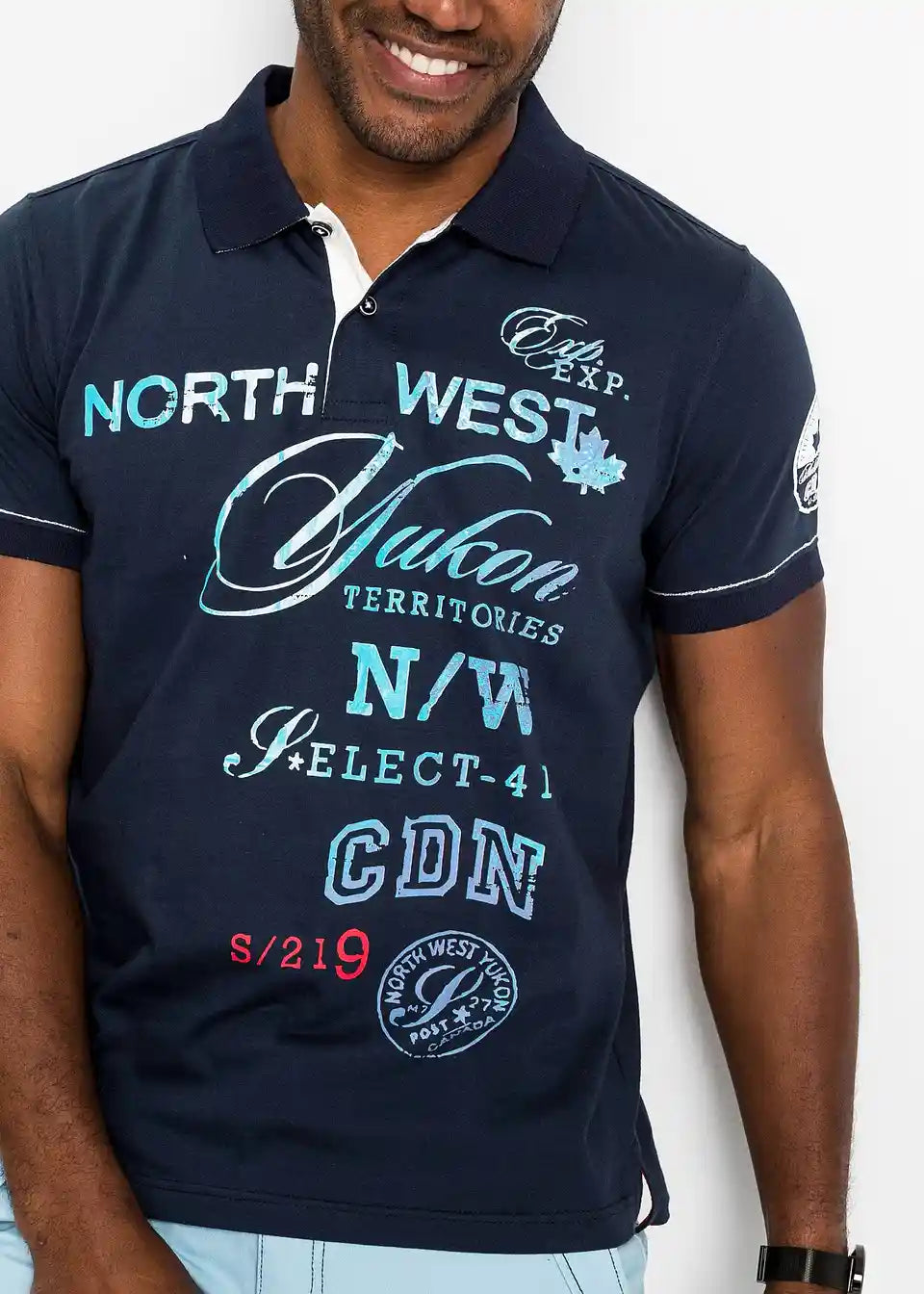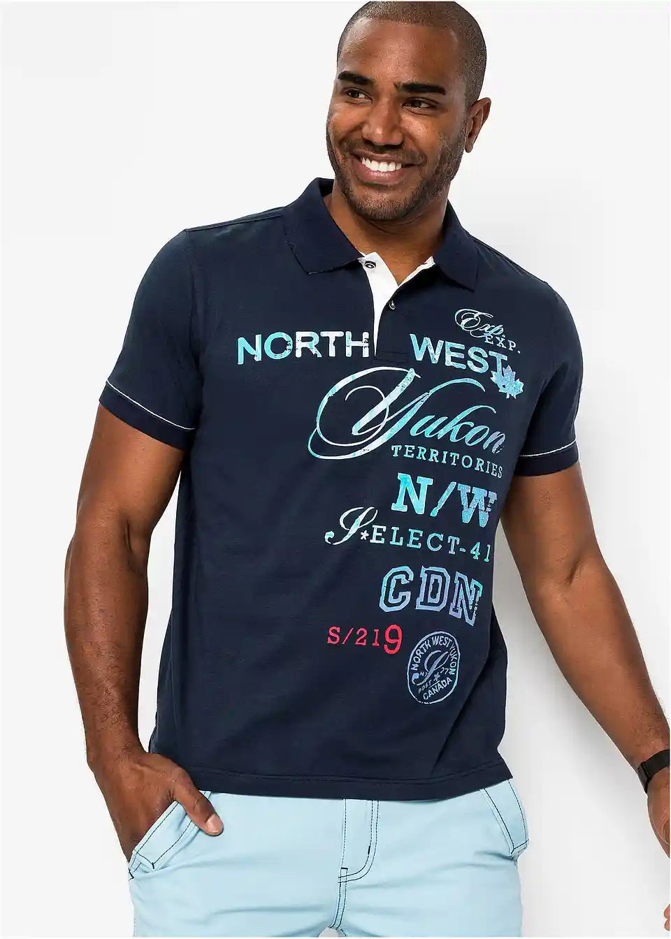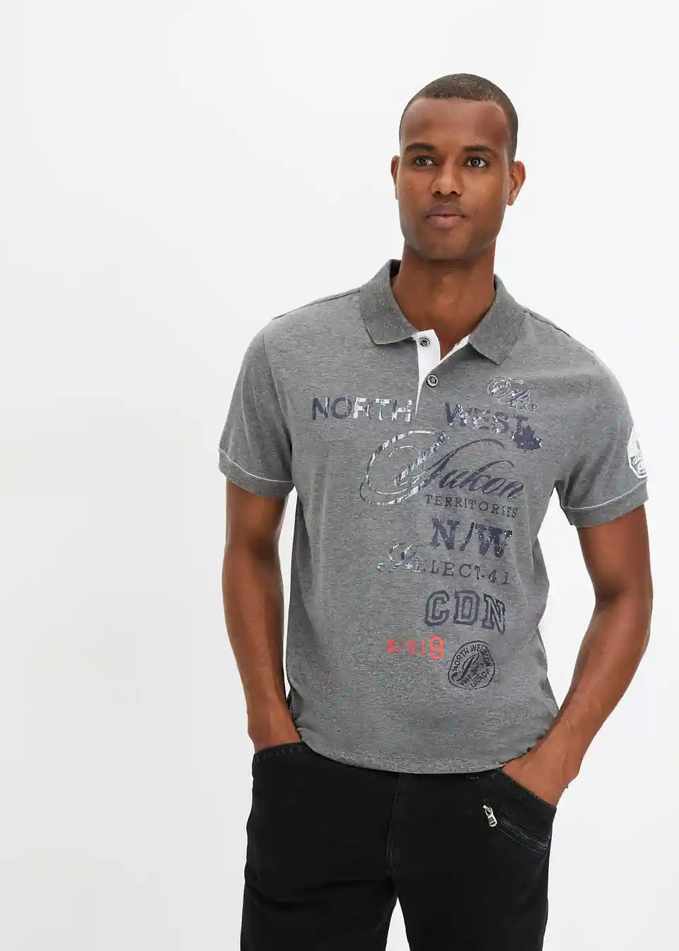 Trendovska polo majica z velikim potiskom na sprednji strani, pralna v pralnem stroju.