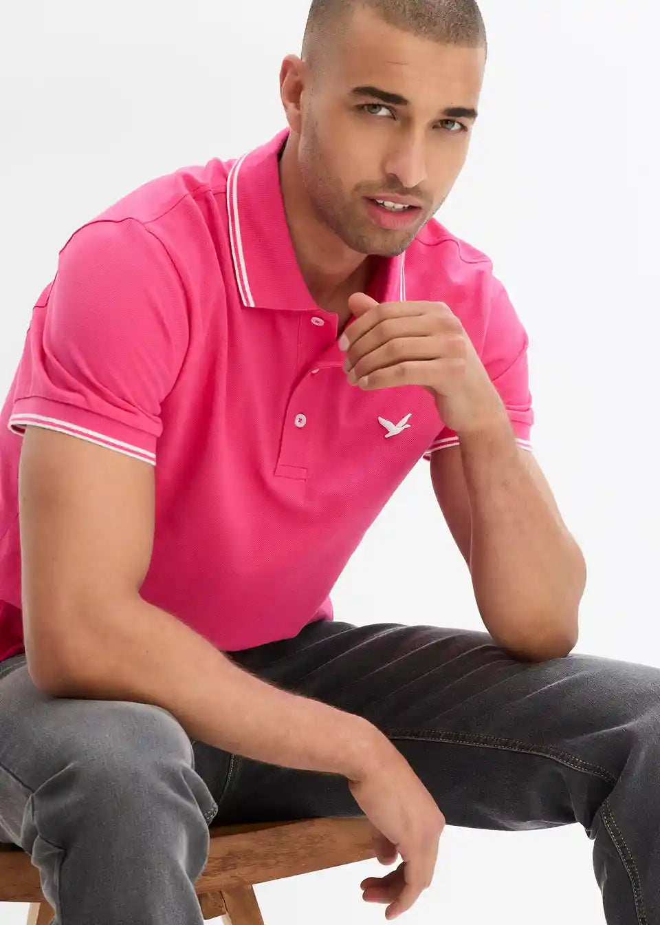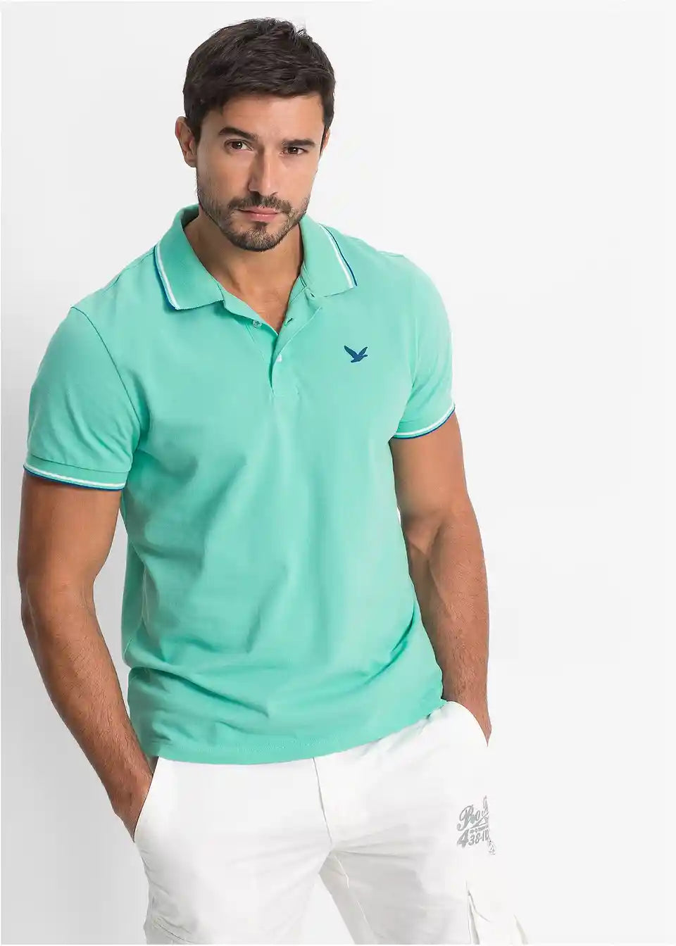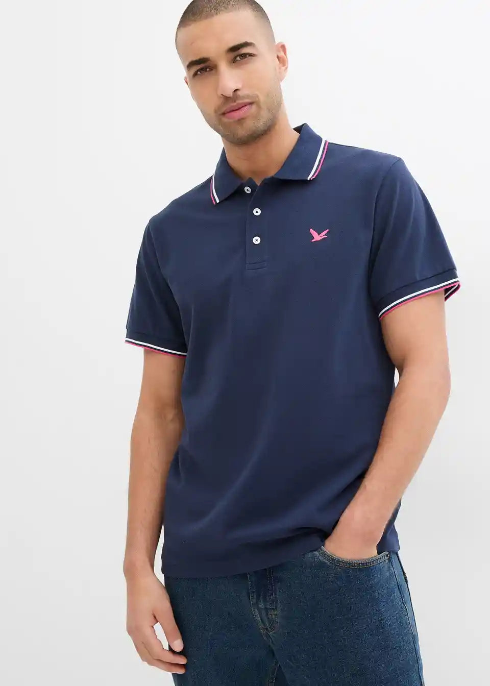 Ta moška Polo majica znamke bpc dopolnjuje vsakodnevne stajlinge. Kratko majico odlikujejo klasičen ovratnik Polo in zapiranje z gumbi. Ovratnik, zunanja stran ovratnika in robovi rokavov so poudarjeni v kontrastni barvi. Na strani prsnega dela je nameščen majhen logotip. Polo majica se odlično ujema s kavbojkami ali hlačami cargo, prav tako pa je primerna za toplejše dni v kombinaciji s kratkimi hlačami.
