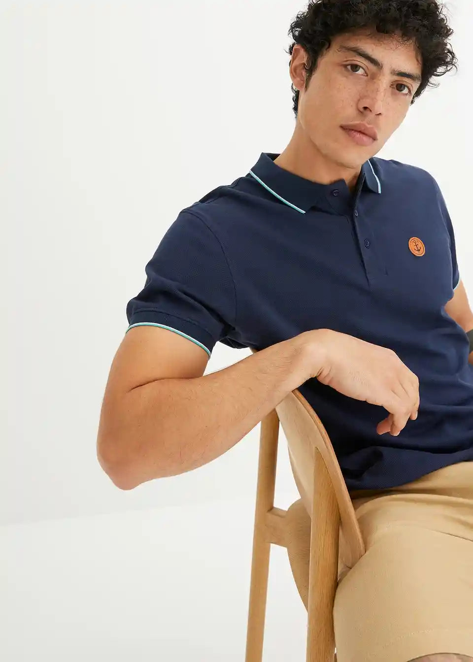 Morsko poloshirt z značko iz umetnega usnja na prsih