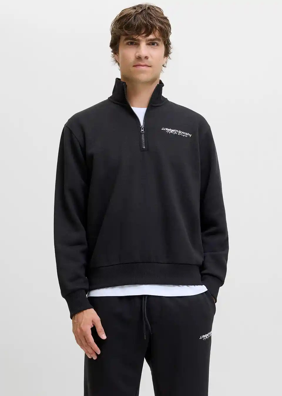 JJ REBEL - Modna majica iz trikoja s polovično zadrgo v klasičnem kroju s klasično dolžino in športno zadrgo - sproščen osnovni kos za trendovski ulični slog