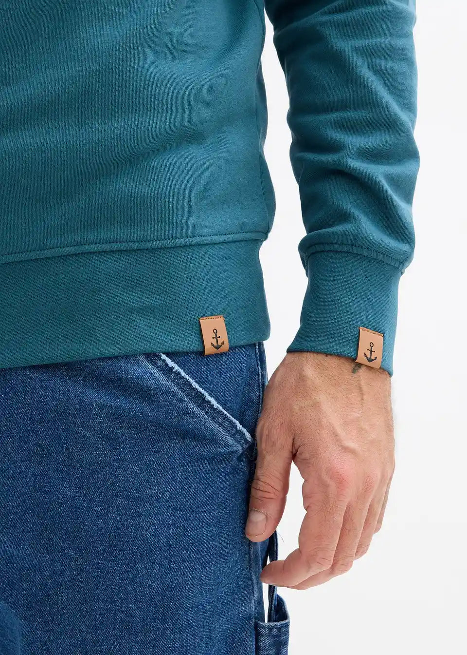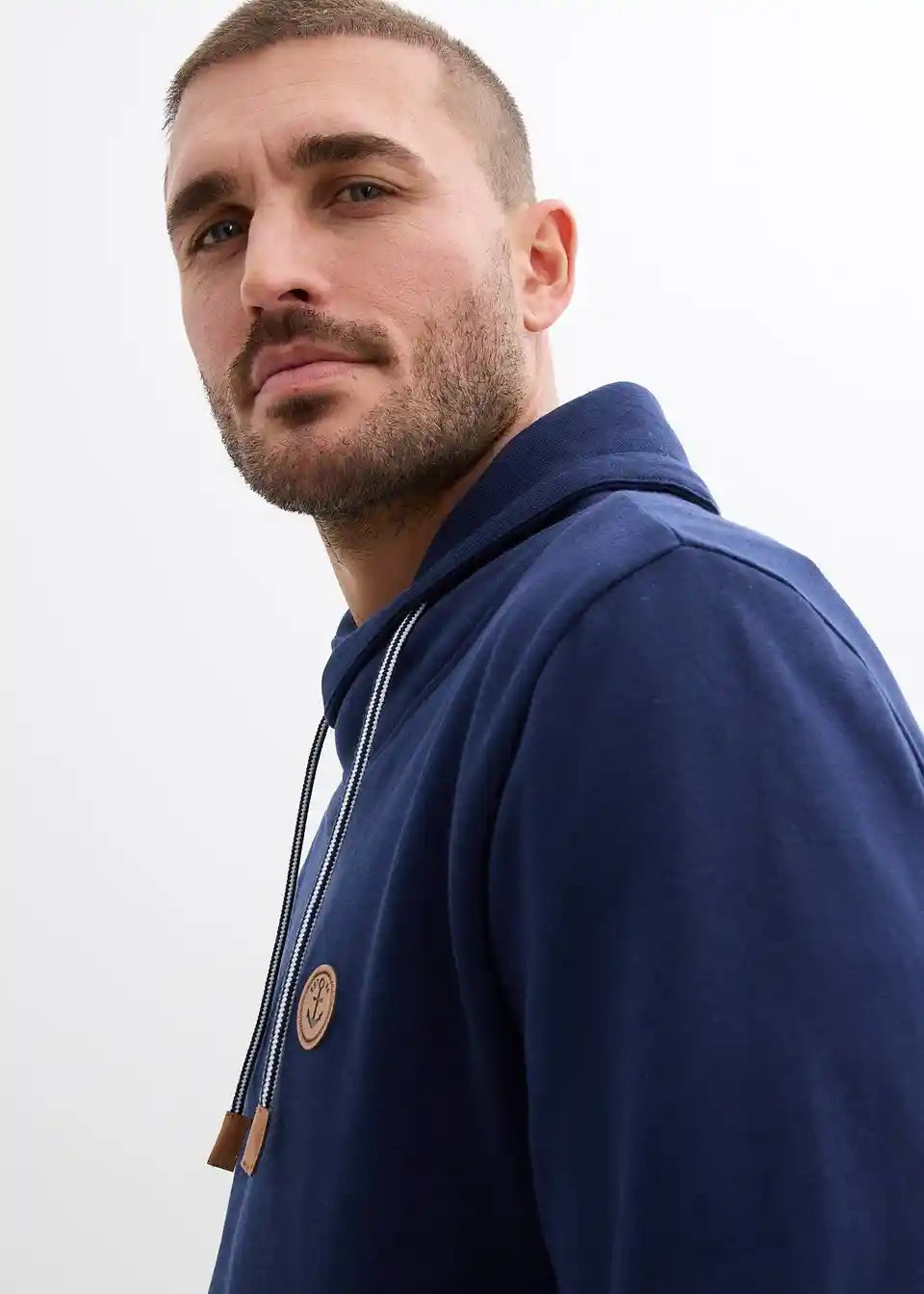 Moden športni pulover z zapovedanim šal ovratnikom in kontrastno vrvico