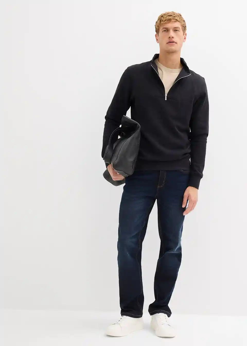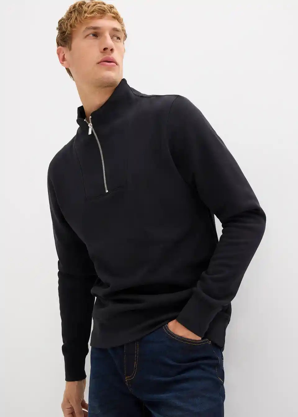Moderna majica iz trikoja s trojanskim ovratnikom in zapenjanjem z zadrgo iz znotraj mehko kosmatenega materiala