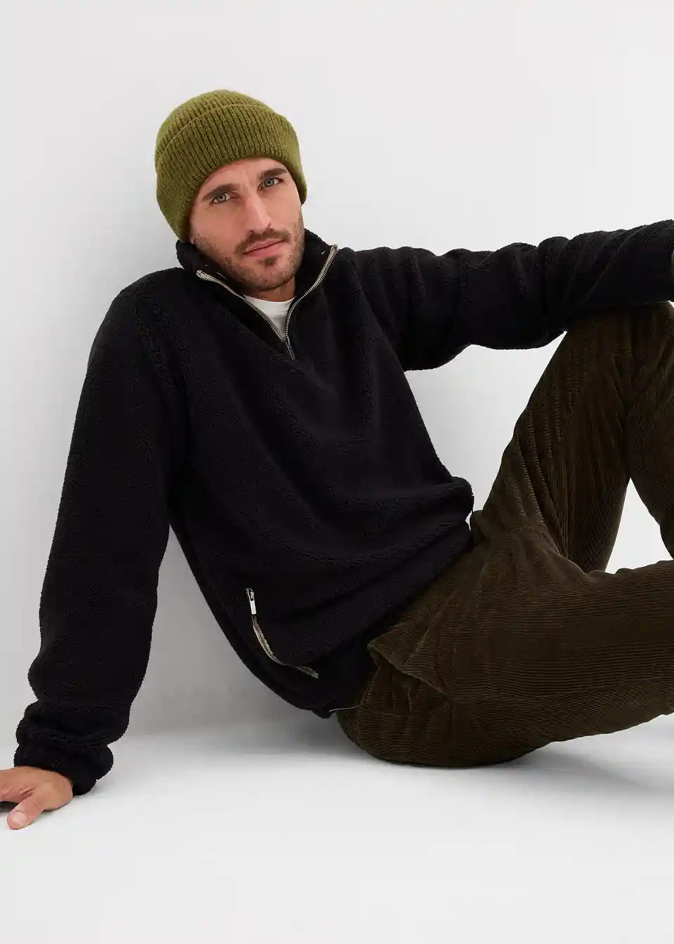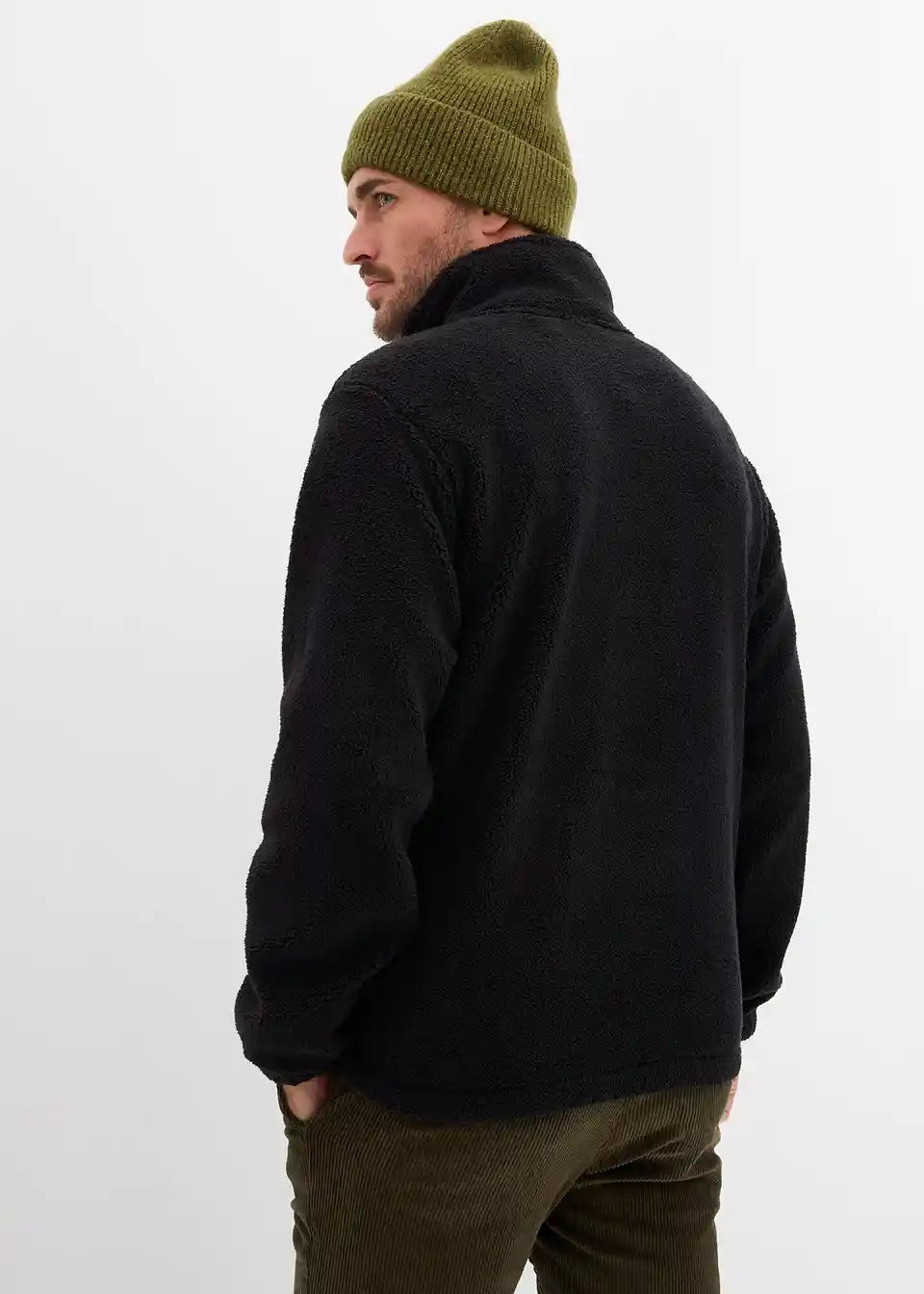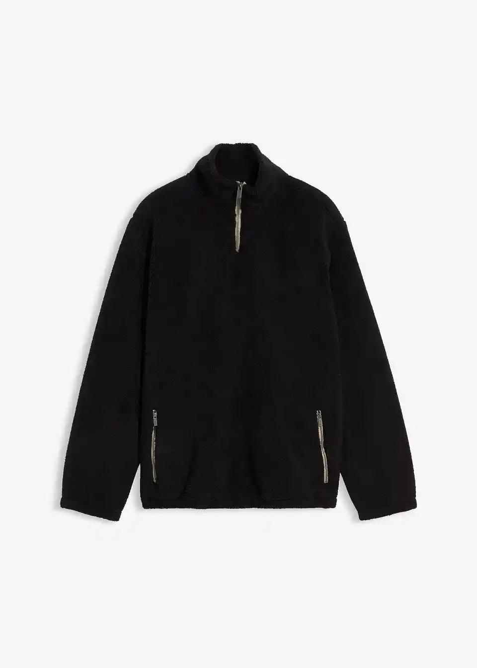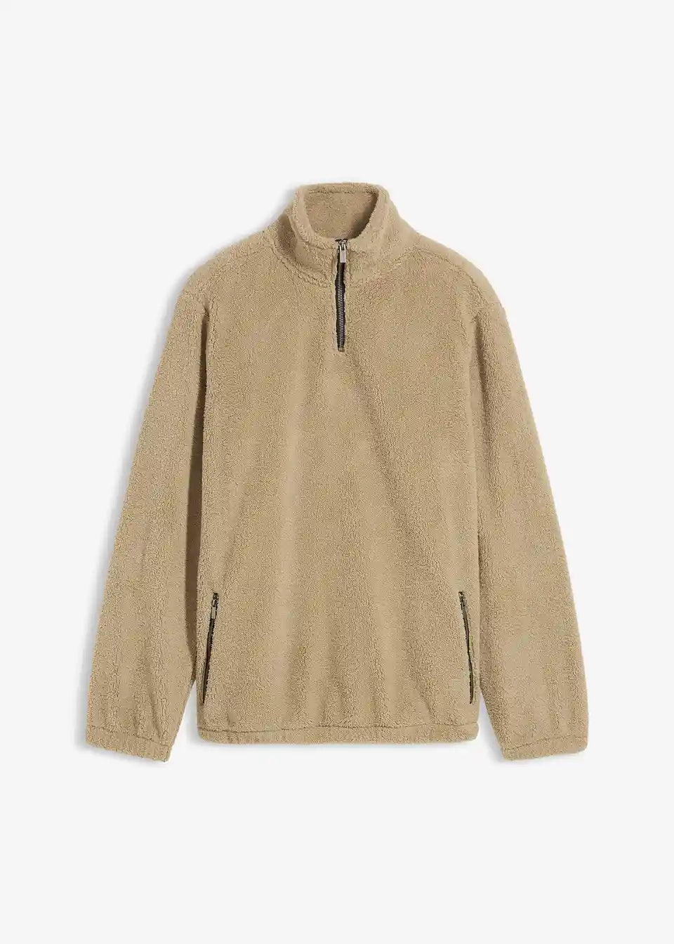 Pulover iz imitacije ovčjega krzna s praktičnimi žepi z zadrgo