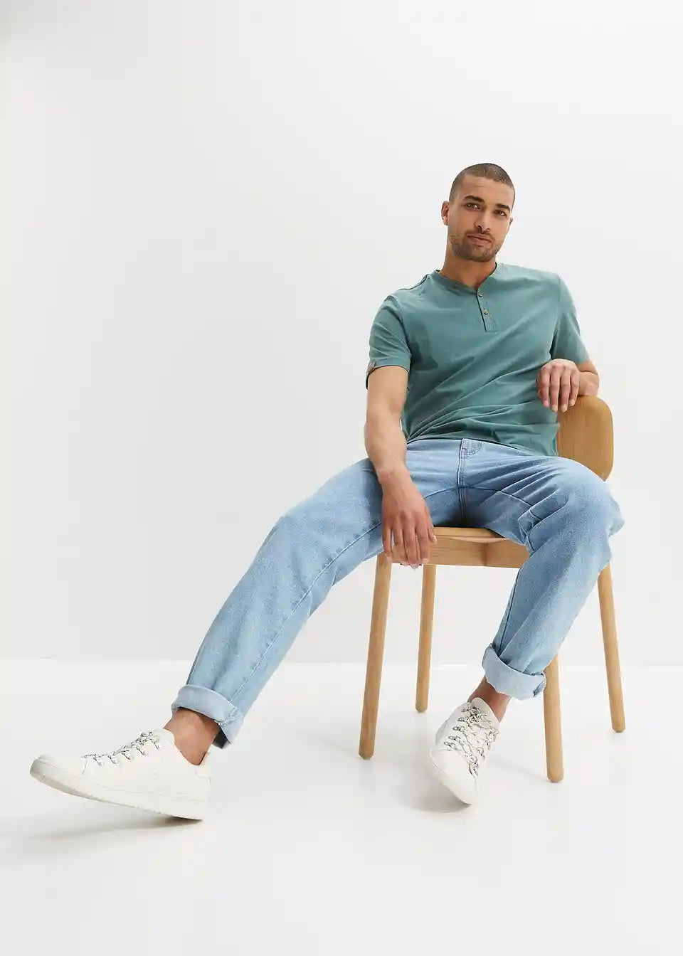 Moška Henley majica, Kratke Rokave z Gumbi (2 kosa)