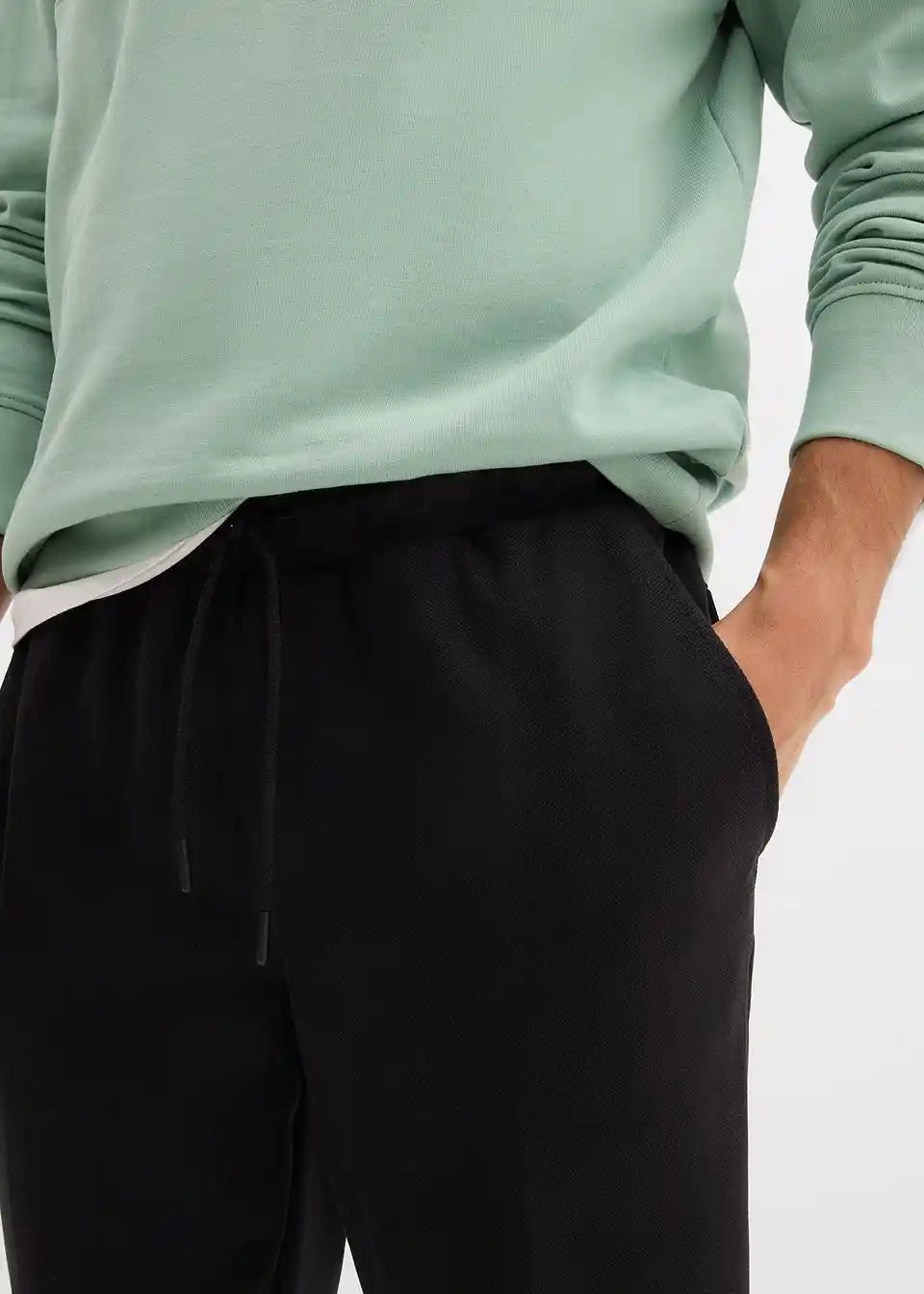 hlače iz stretch bombažnega pikeja v ozkem kroju