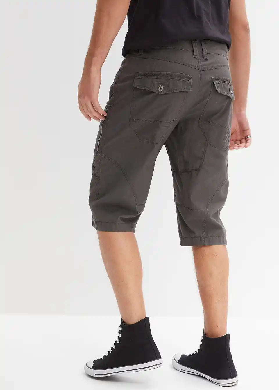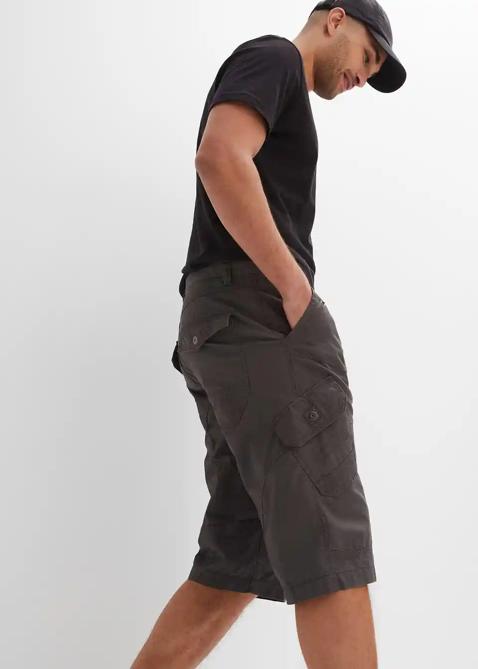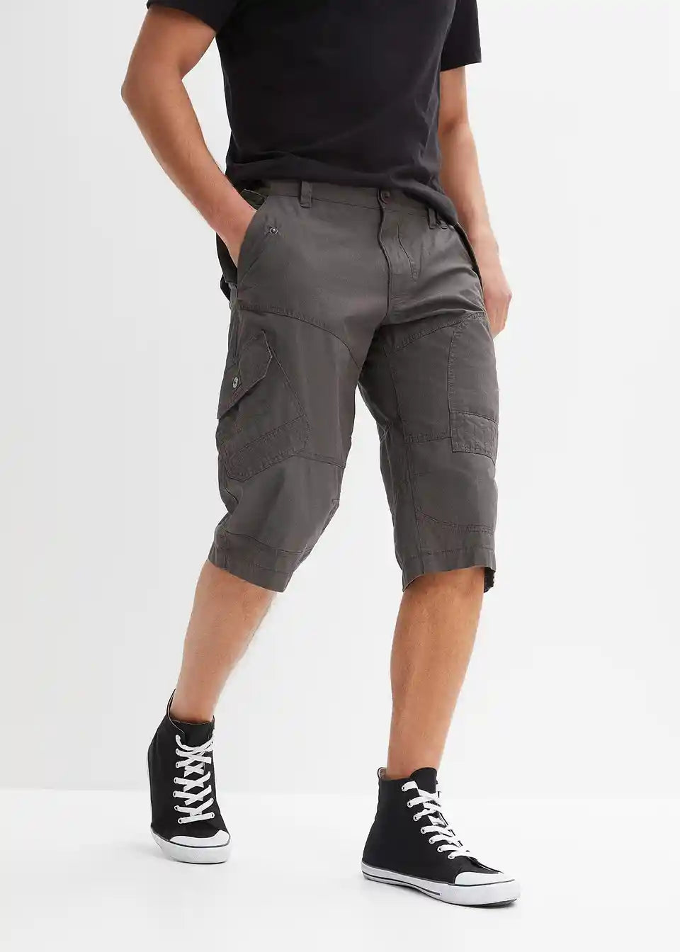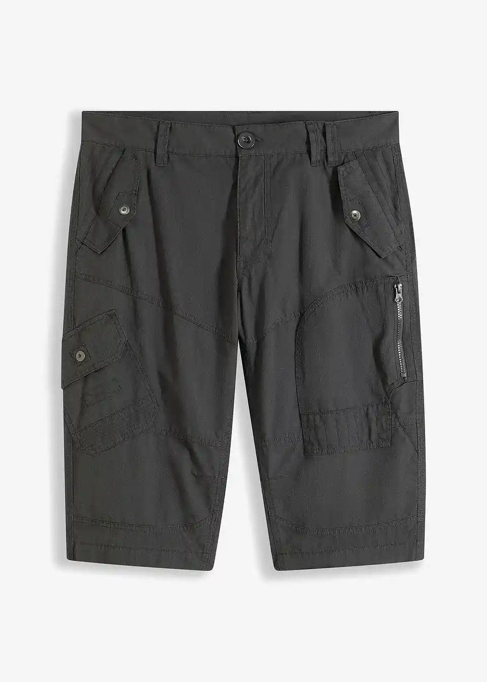 Te stilske moške Long-Bermuda hlače izstopajo z veliko žepi in šivi. Sprednji žepi za vstavljanje so oblikovani s preklopom in gumbom. Na stranskem delu hlačnic sta dodana še dva žepa: eden s preklopom in pritiskačem ter drugi s stransko zadrgo. Dva zadnja preklopna žepa dopolnjujeta trendovski videz Long-Bermuda hlač, ki segajo čez kolena in so oblikovane v Regular Fit kroju.