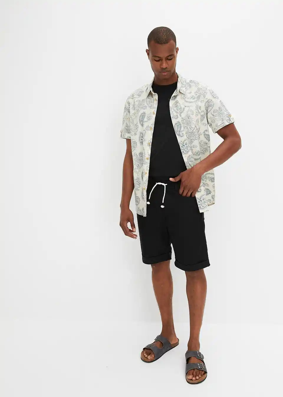 Platnene bermuda hlače brez zapenjanja v klasičnem kroju