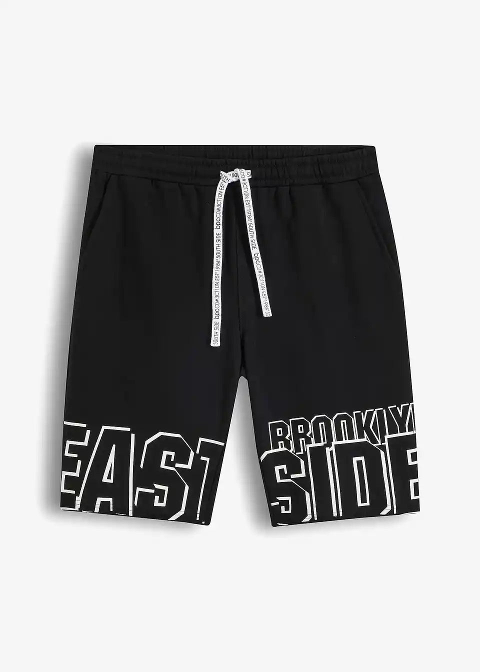 Moderne Sweat-Bermuda z natisom in odprtimi robovi na robu.
