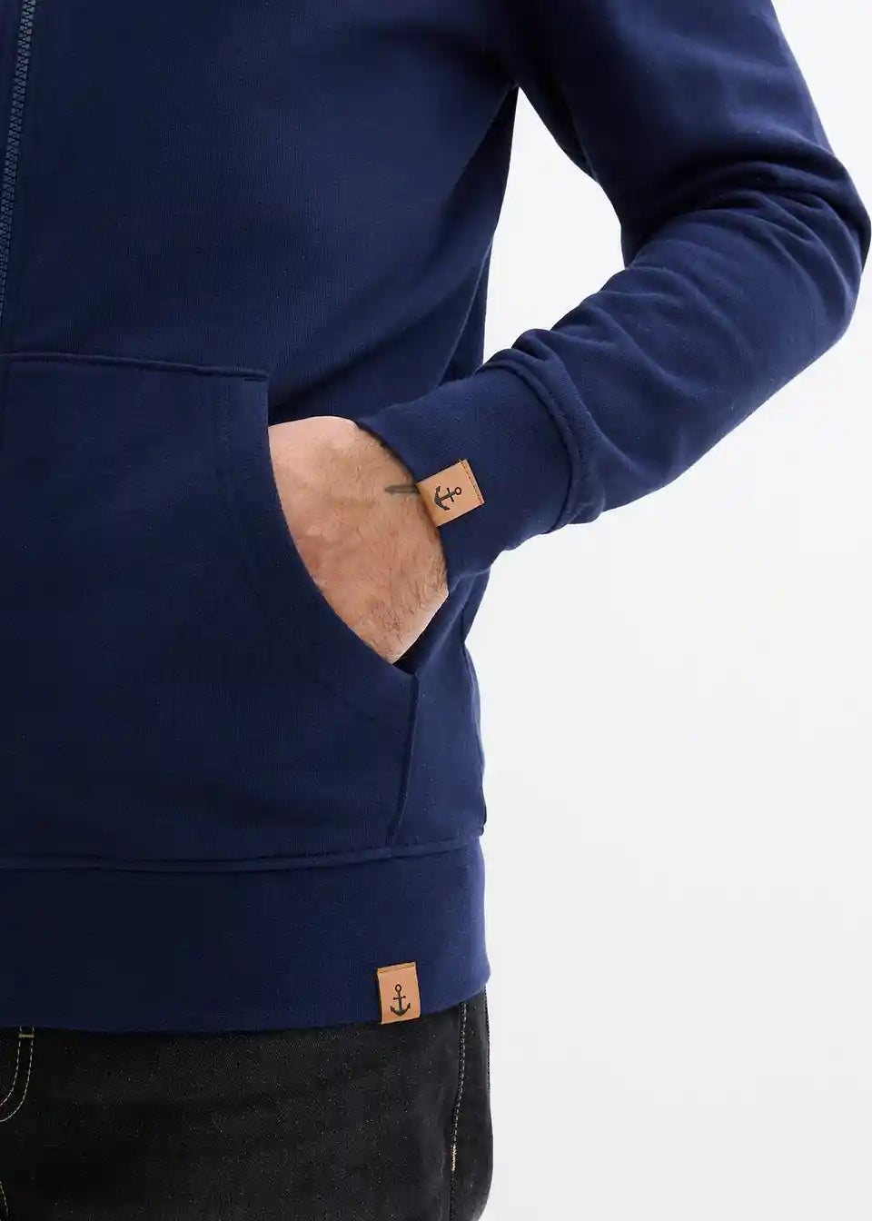 Izjemna hoodie jopa z zadrgo v klasičnem kroju s kapuco in markantnimi vrvicami